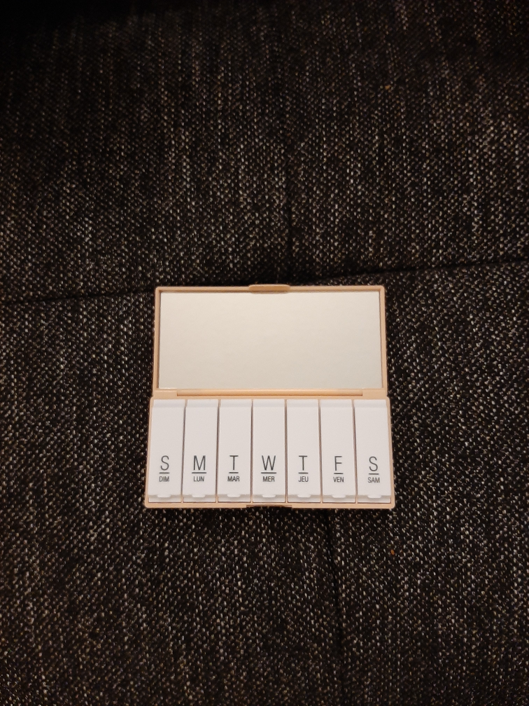 brand new medicine organizer for a week's medicines with a mirror