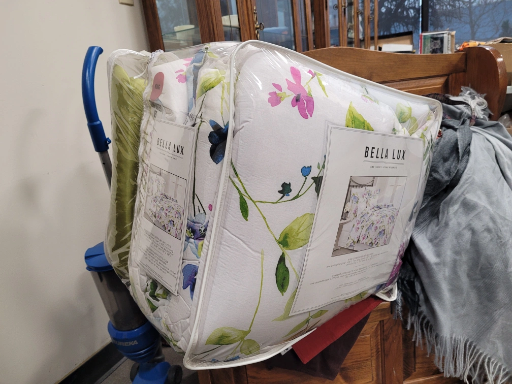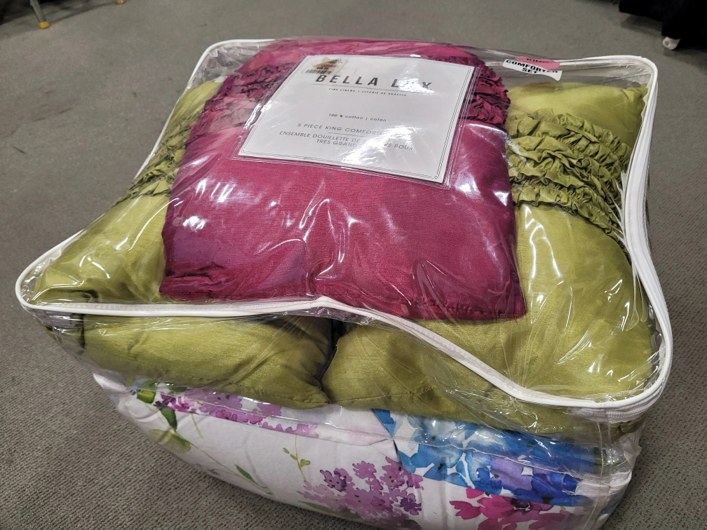no enough interest in this item so i moved it to a max sold online auction. its open till Saturday and has a $1 starting bid with no minimum. dm me for the link to bid . Pickup by appointment at 391 attwell drive during monday to friday 8am to 430pm. Its in clean dry modern storage and I will meet you there. This was from pet and smoke free environment. I have an extra 2 set of sheets with the comforter set to give you. One green one beige. $65 for all firm cash deal. Plastic pallets also for sale pick in person $7 to 12.50 each style depending. Not sure sizes. You need to pick in person. No delivery. Thanks you.