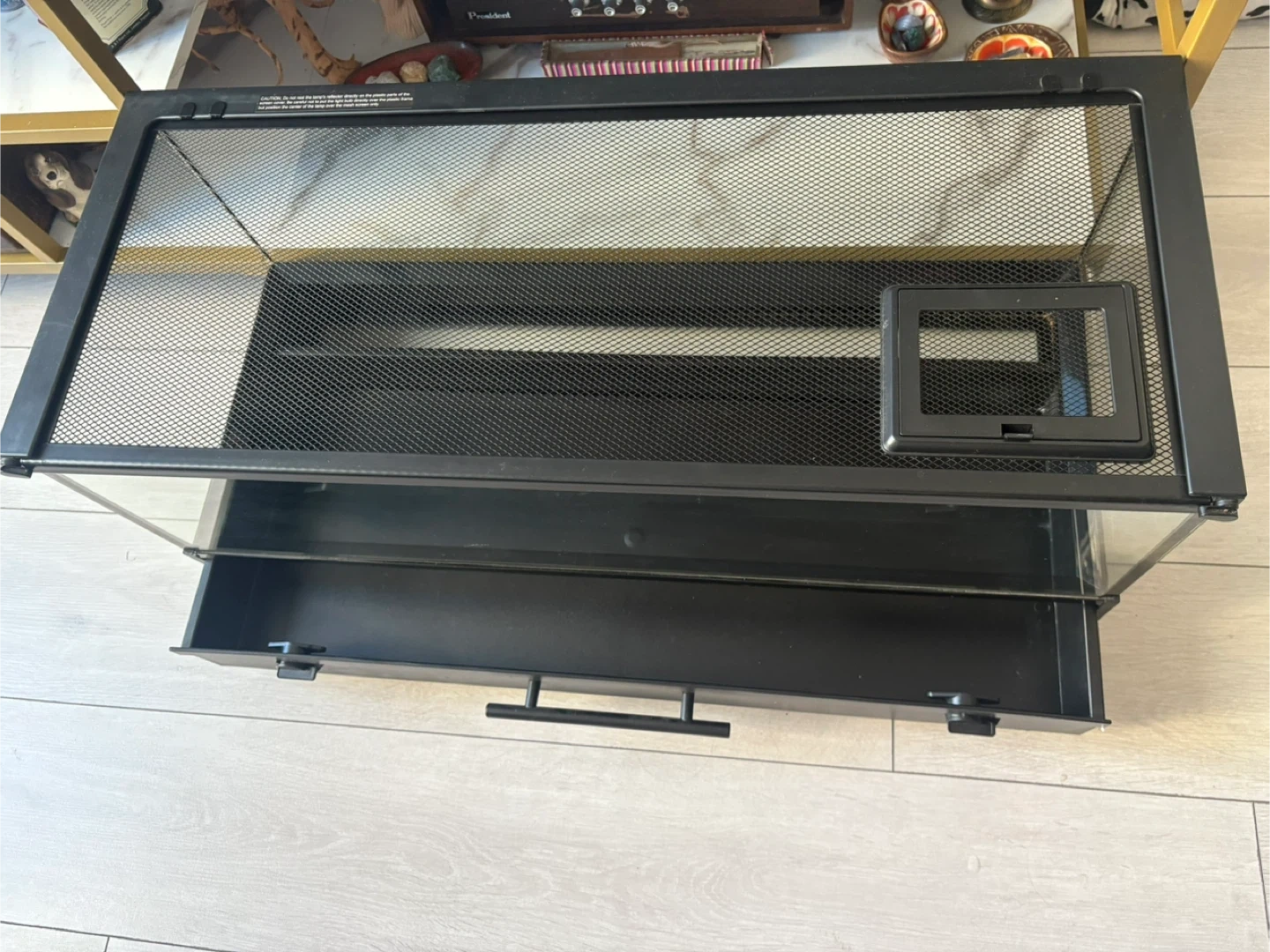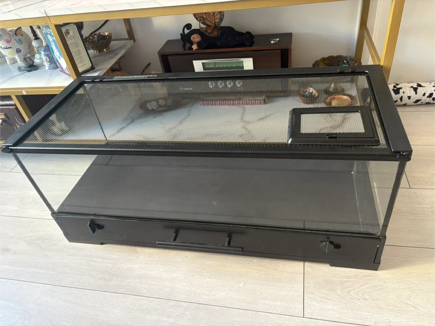 Selling an Exo Terra glass terrarium. It's in great shape and ready for your reptile or amphibian friend! The terrarium features a black frame and a mesh top for ventilation. Perfect for creating a comfortable and secure habitat for your pet. Only used for a month or two basically new