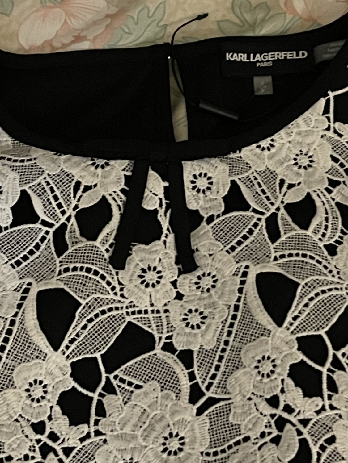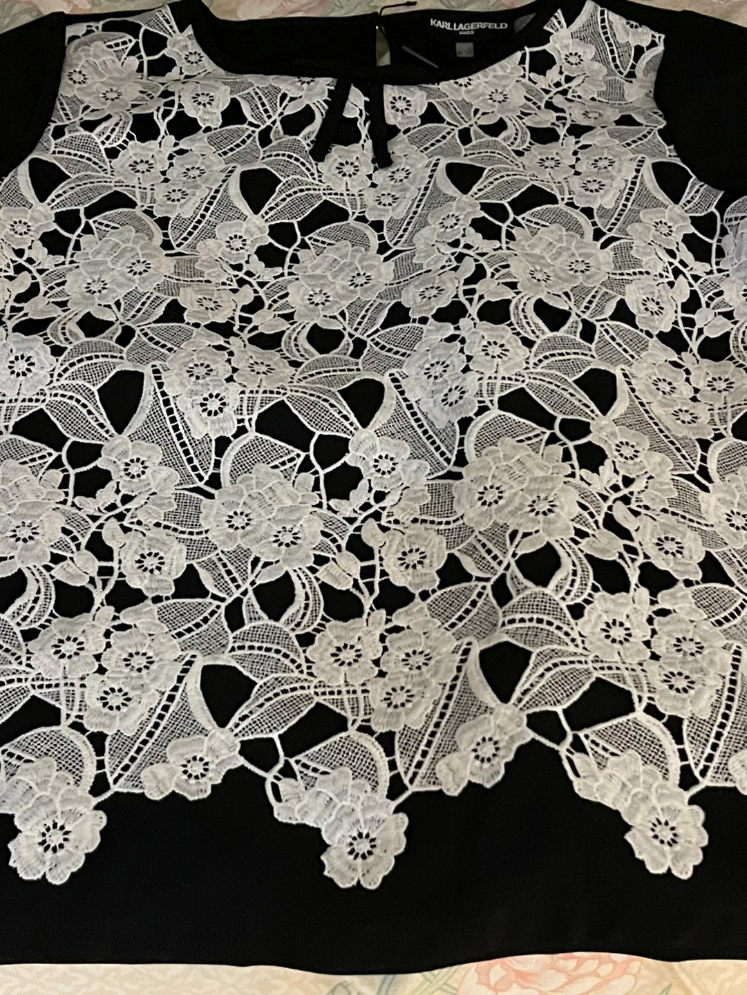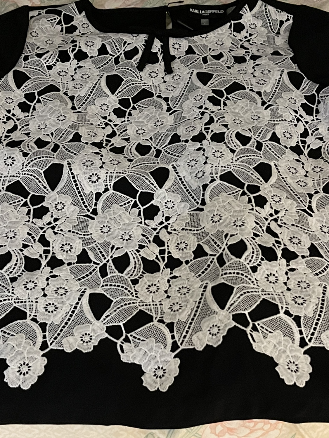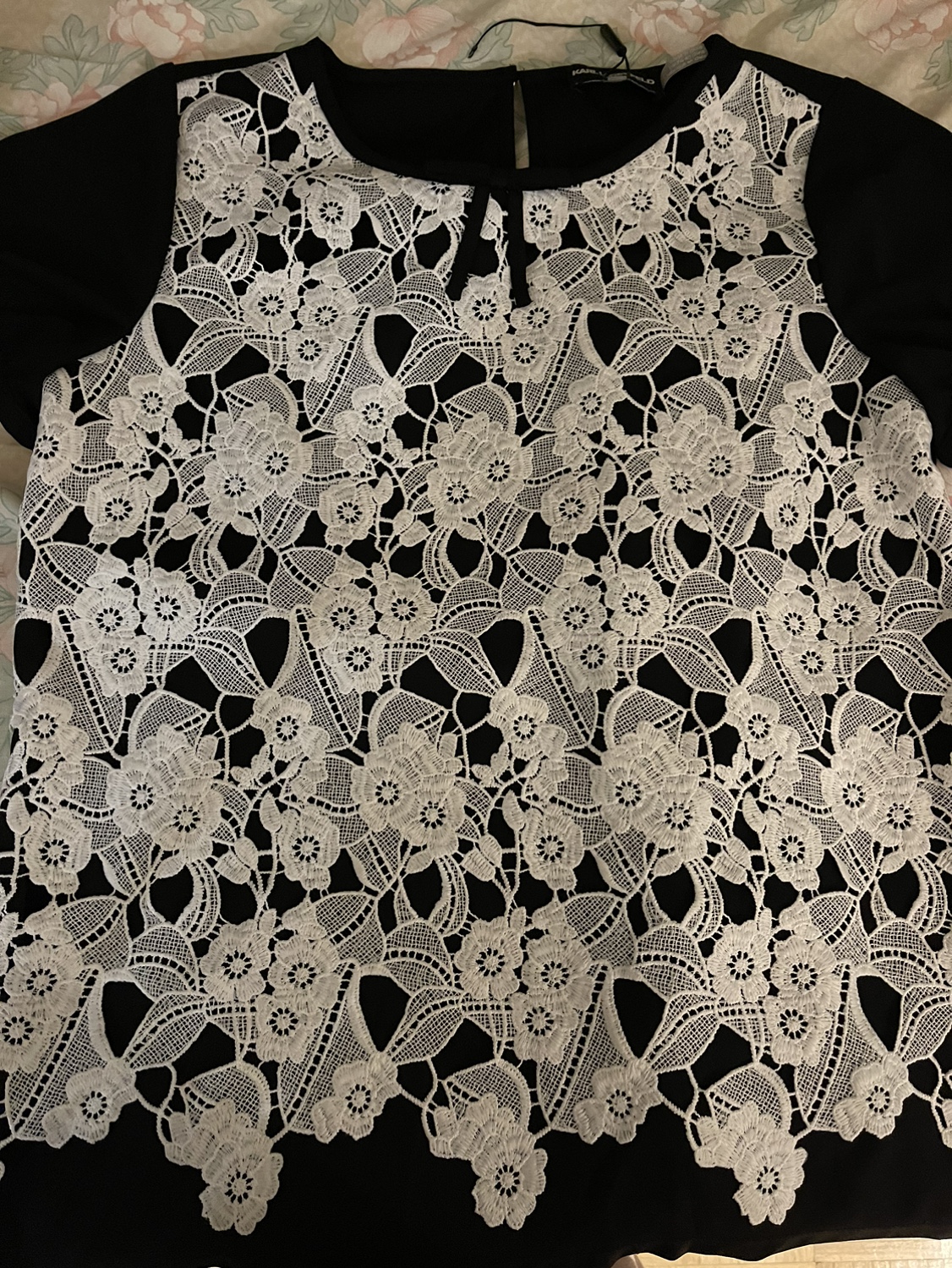 New black top with white lace in front Back black Absolutely new