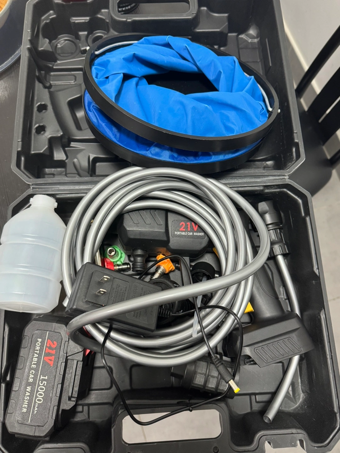 Selling a 21V portable car washer. It comes with all the accessories in its original case. This portable car washer is perfect for on-the-go cleaning!