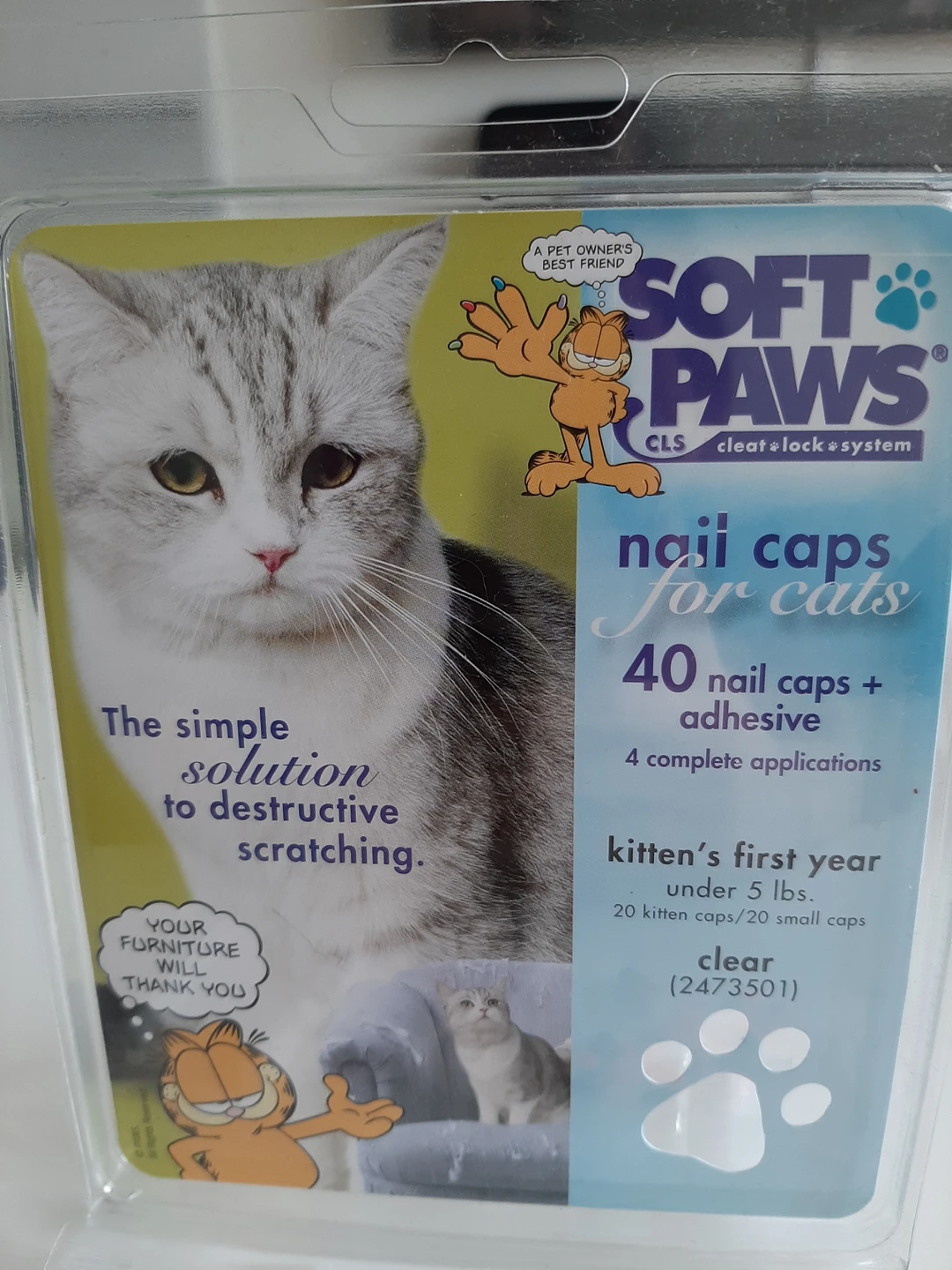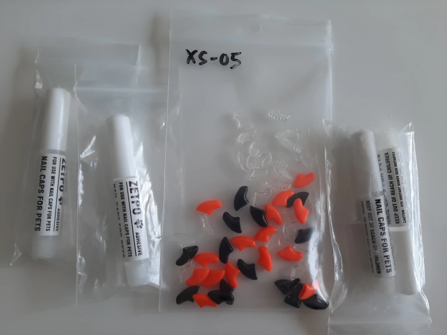 A mix of nail caps and adhesive applications. I bought the orange and black nails from amazon so it is a mix of those and the clear nail paws. I used some on my kitten already but he's too big now. Recommended size for kittens or under 5 lbs.