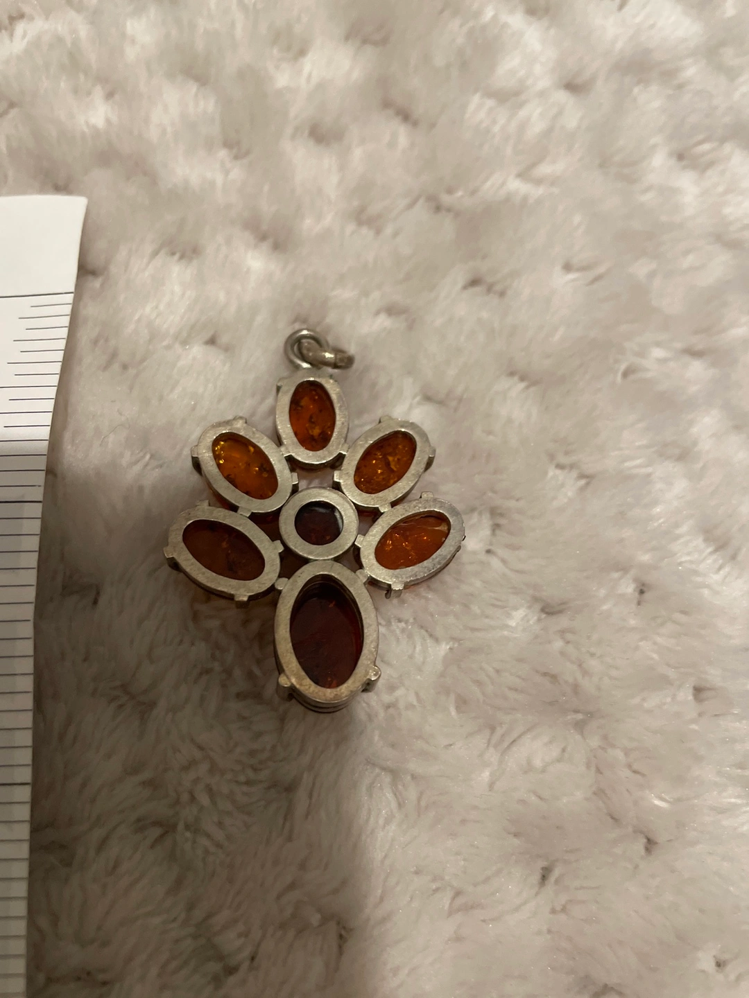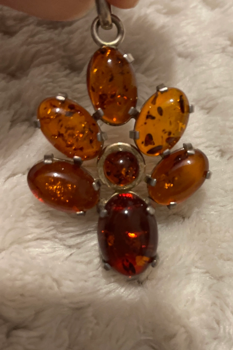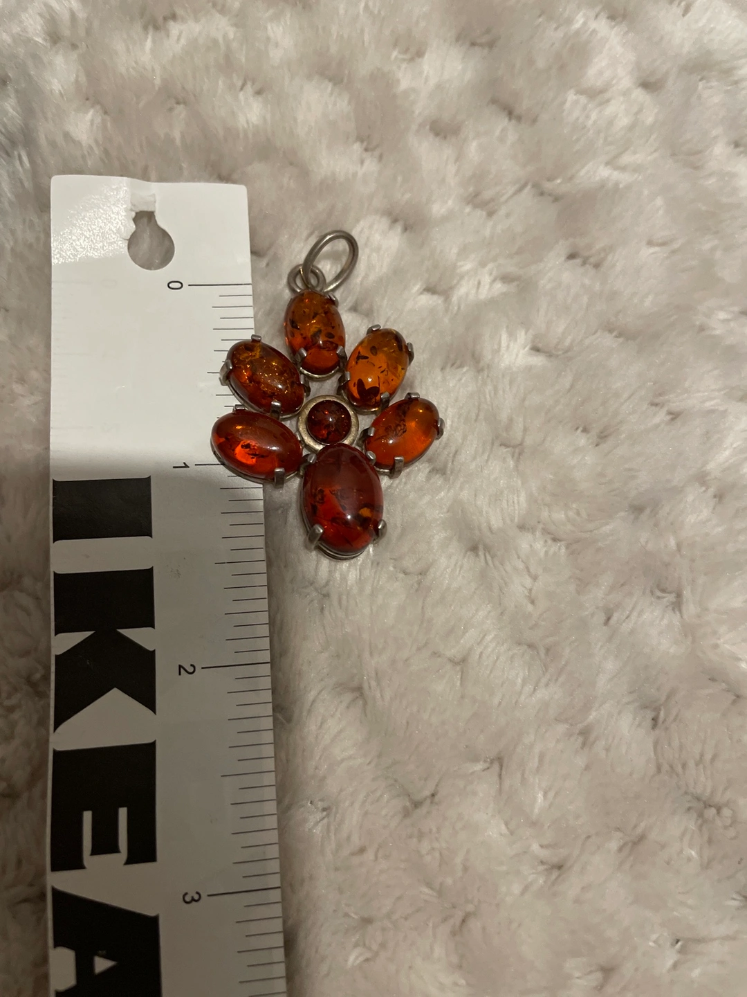 Genuine Baltic Amber. Pendant. Wheat flower. Stones are glued to the metal unit.