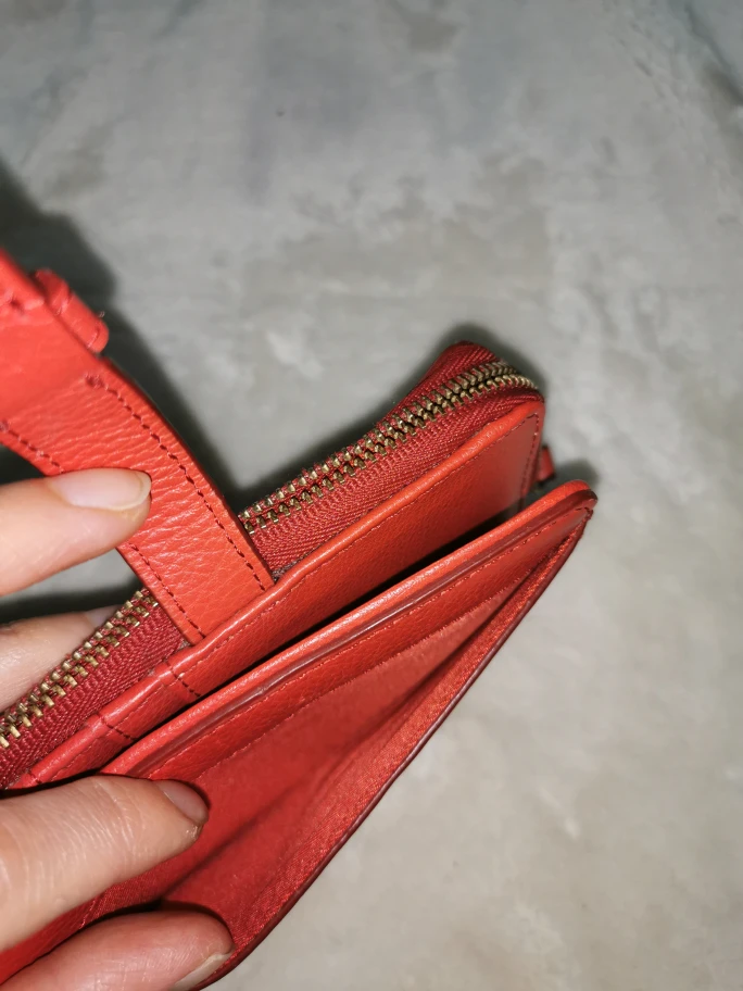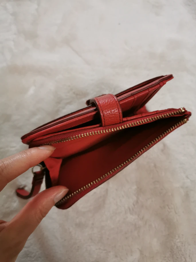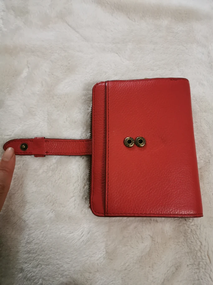 Roots Red Leather Zip Around Wallet