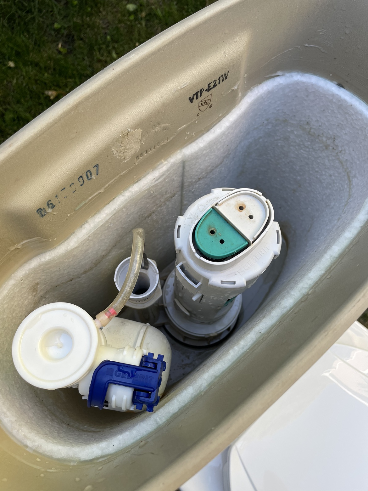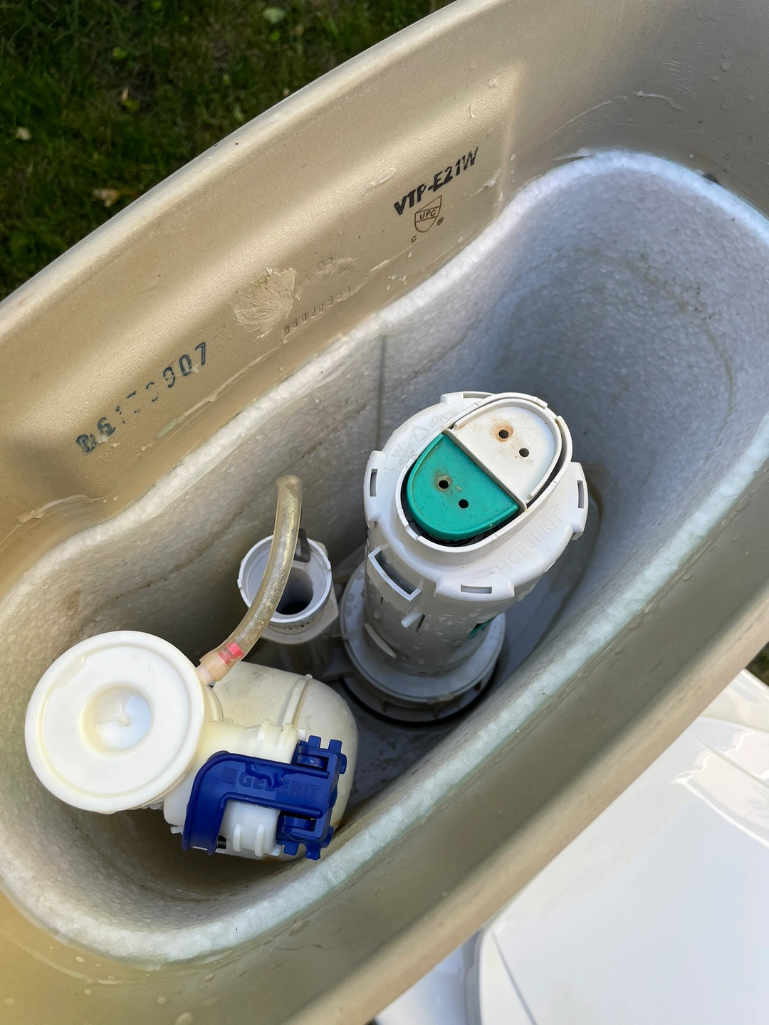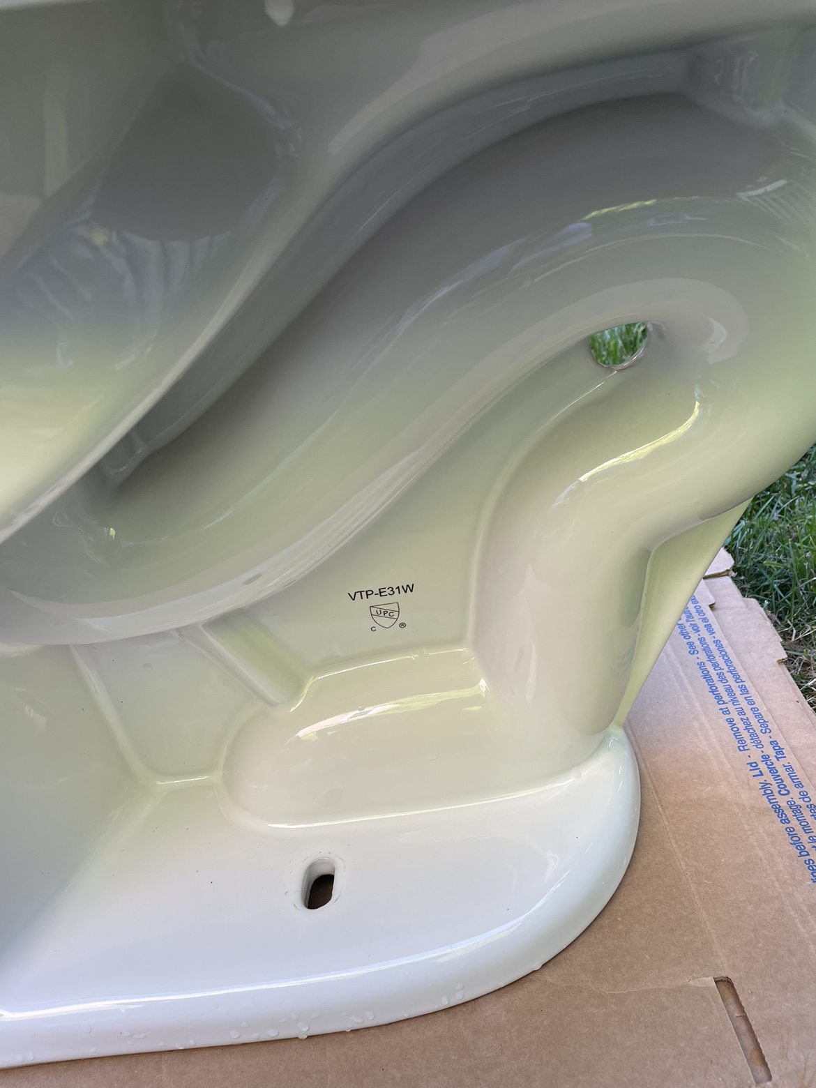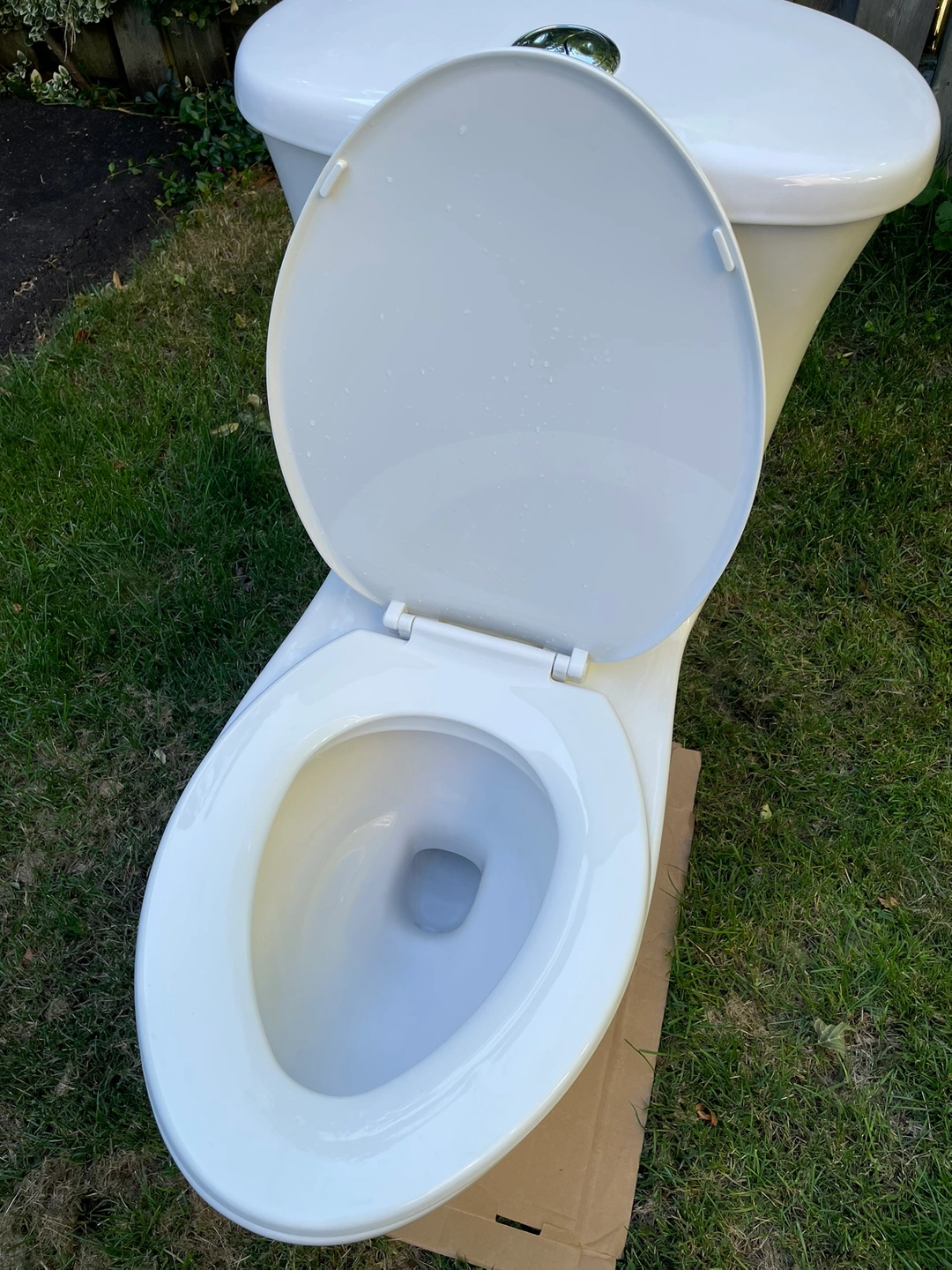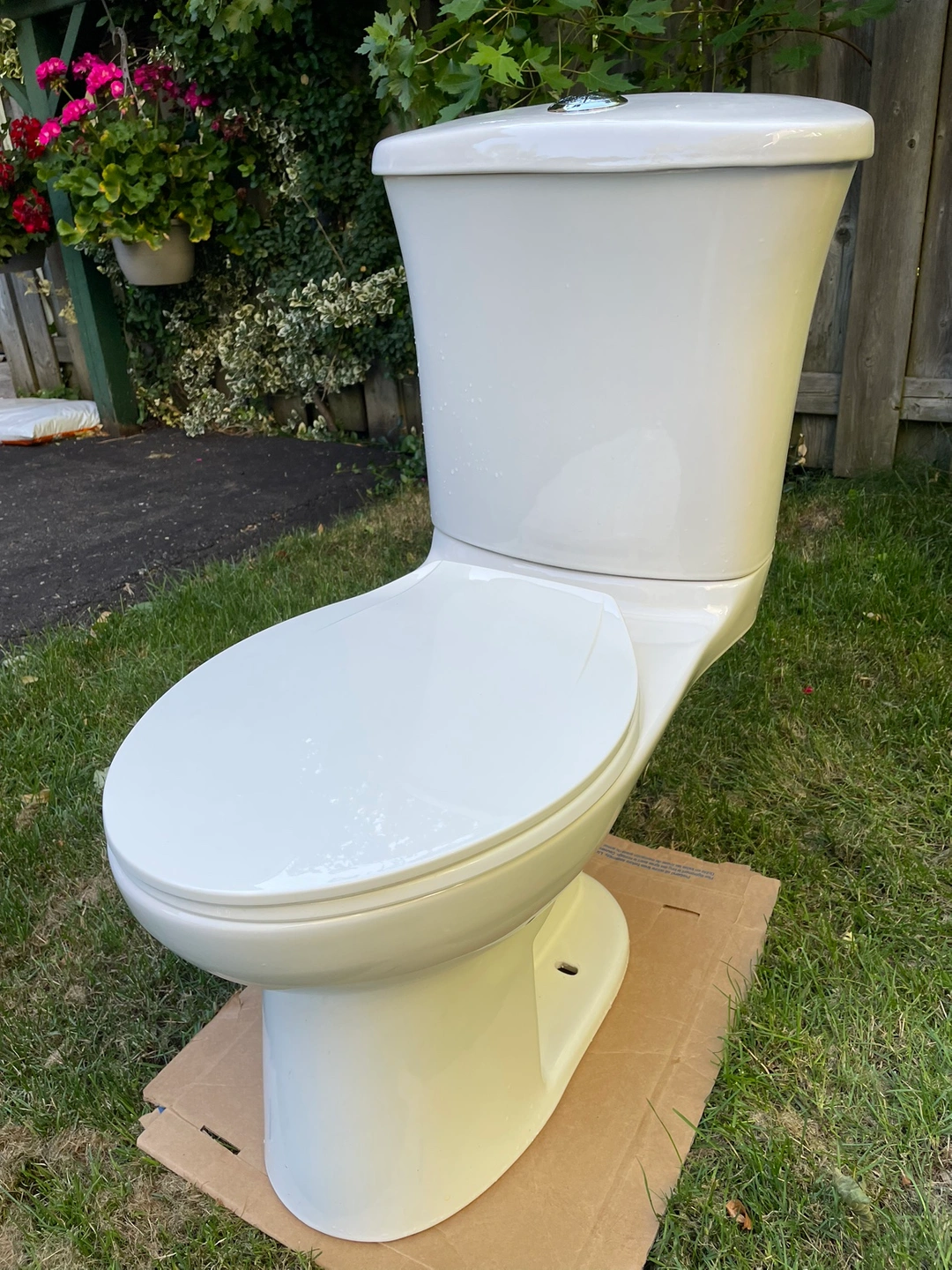 Two piece toilet Dual flush High efficiency Insulated tank Comes with toilet seat and flexible water supply pipe. Works great no issues, very clean like new.
