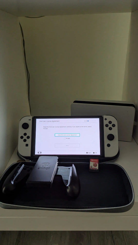 -Mint condition OLED Nintendo Switch with dock and charger lightly used for 2 months -Carrying case -Pokemon shield HDMI cable not included
