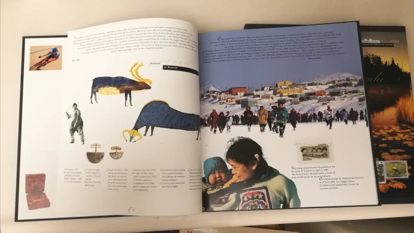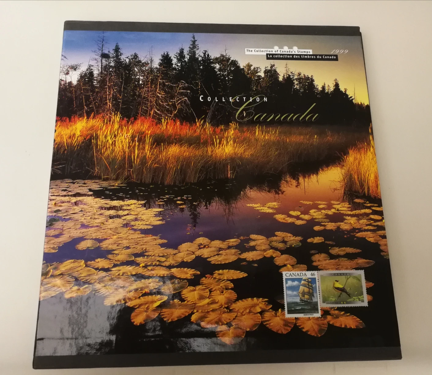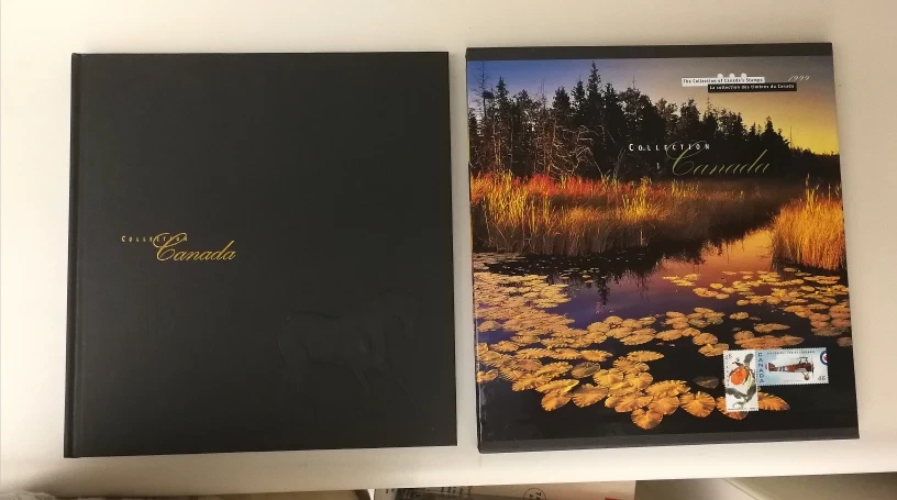Hardcover yearbook for 1999 Canada stamps collection. Album only, no stamps. There are multiple available (Year 1999). Canada's growth and development are reflected in the stamps of 1999, a great way of learning Canada's history and cultural through the stories, illustrations, and photos in this Yearbook. There's protective sleeve/cover for each stamp. pick up at St Patrick station, downtown, Dundas and University area
