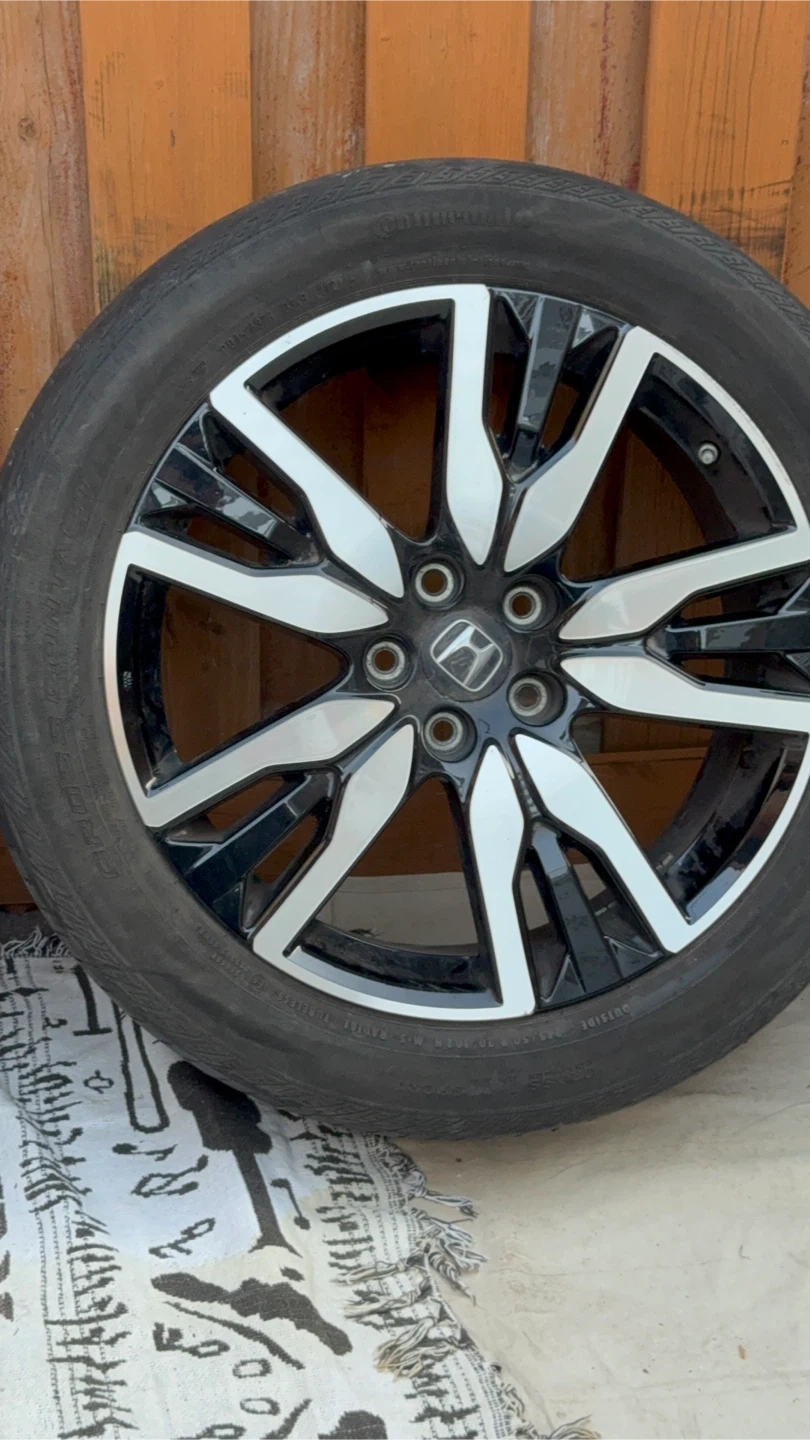 Honda pilot luxury rims 20 inch factory OEM rims Continental all season Tires, but the Tires are coming for free I’m only selling the rims Bolt pattern 5X 120 Pick up Midland and Danforth first come first serve