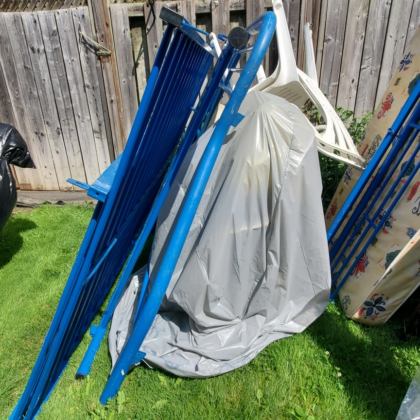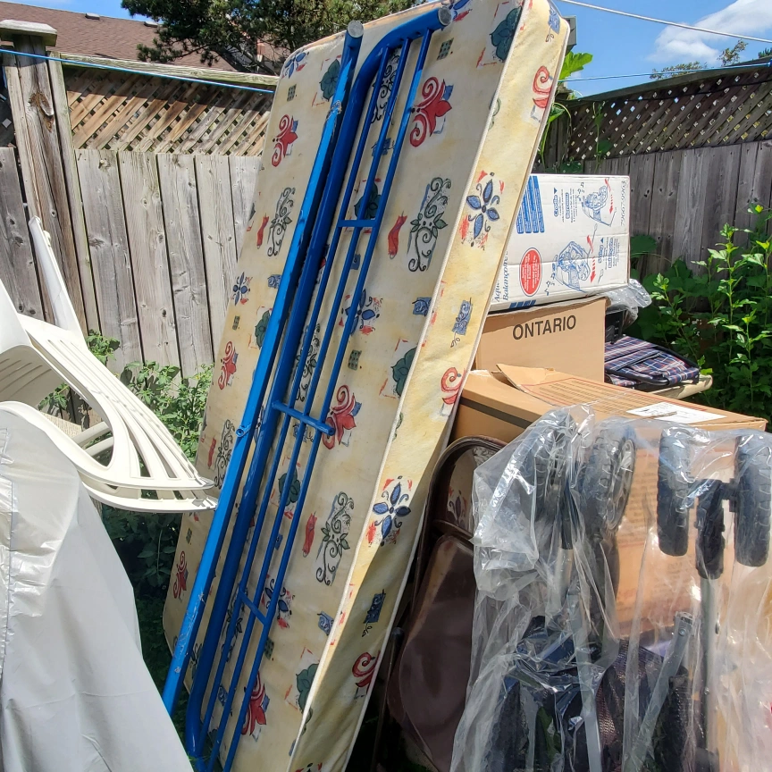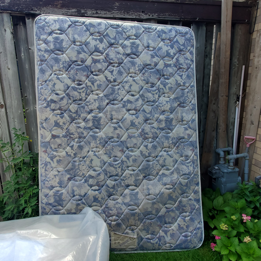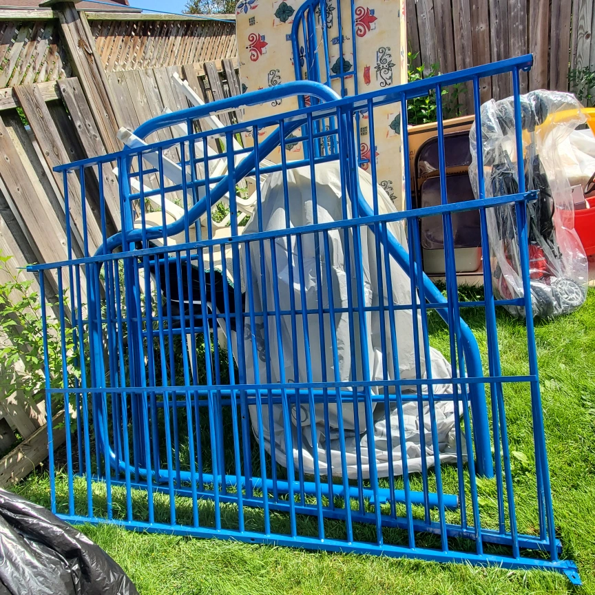 Sorry for the crappy pictures but we are clearing out our basement. Bunkbed is in good condition just needs a wash or wipe down. You can take the mattresses too if you'd like. You'll need a large SUV or truck. Bottom bunk is a double and top is a single.