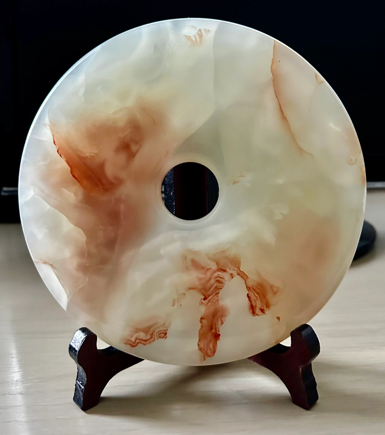 Afghanistan Jade Stone Blessing and Lucky Charm on Stand, great for home decorations and house warming, pix showing front and back Diameter 18cm; including stand 20cm
