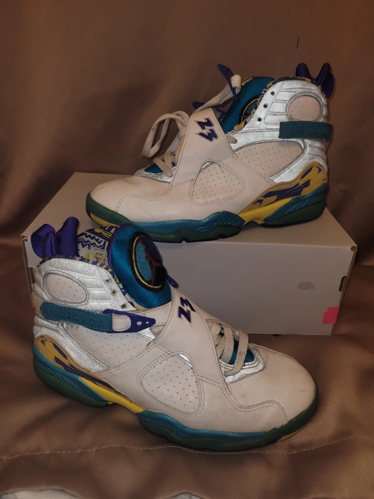 retro Jordan 8 white aquas from 2007 negotiable good condition want to get rid of pickup only at dufferin mall dm for questions and photos