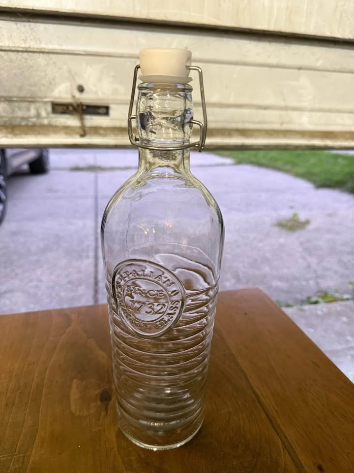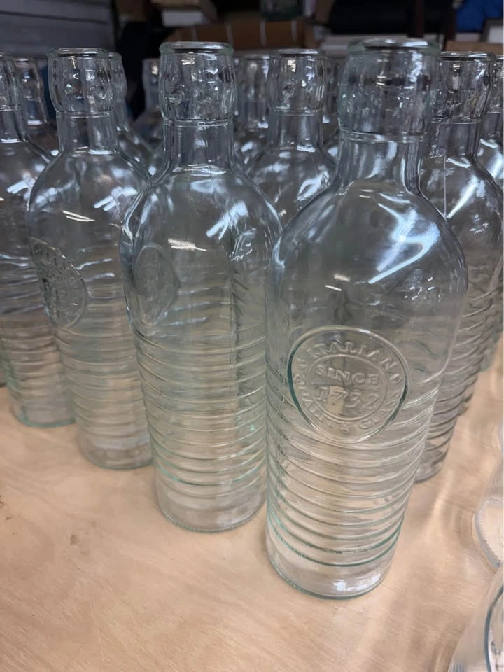 25 glass bottles used at our wedding. I removed the lids to keep the look simple, but have them still. They’re easy to attach if wanted! I also have another 25 of a different style. Pick up near Weston and 401.