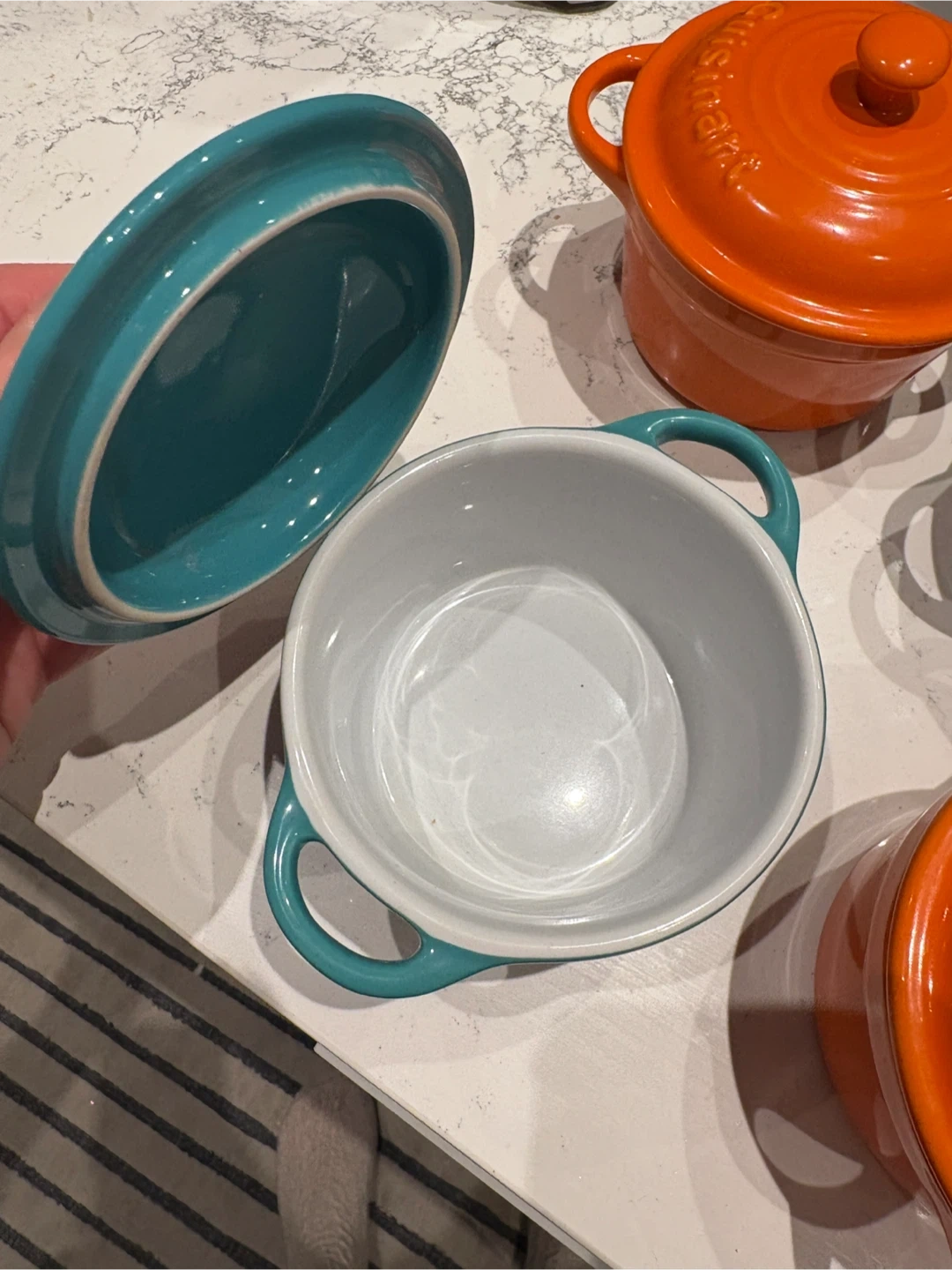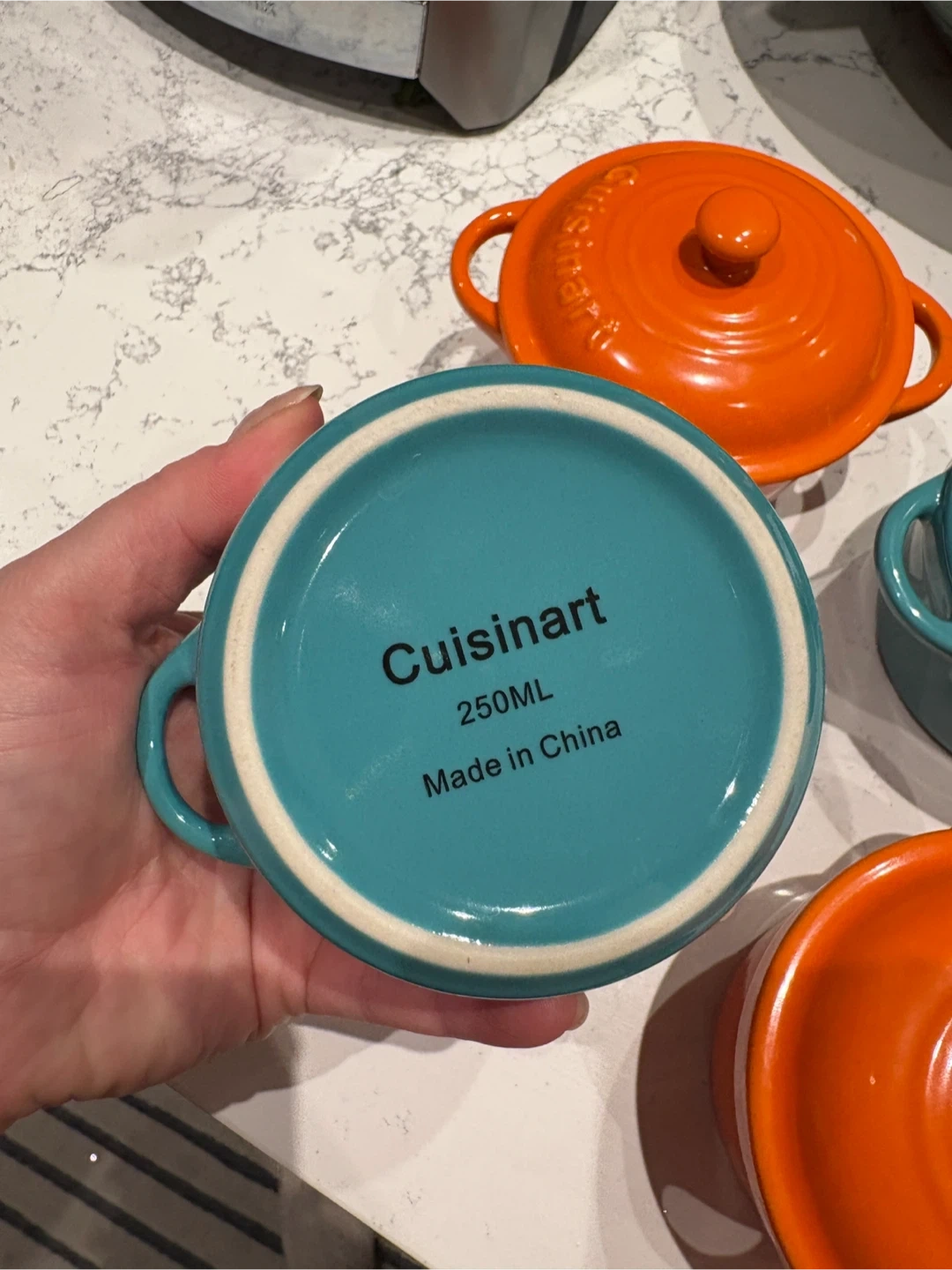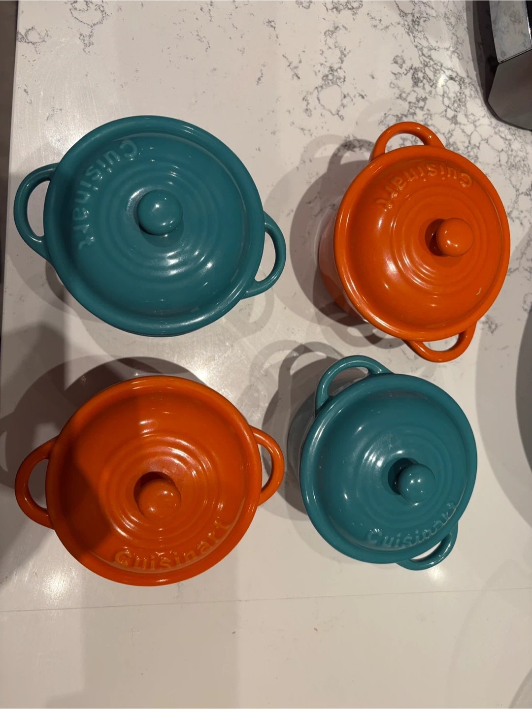 Set of four Cuisinart mini cocottes! 250ML in size, in teal and orange colours. Pick up in the Beaches at Queen and Victoria Park.