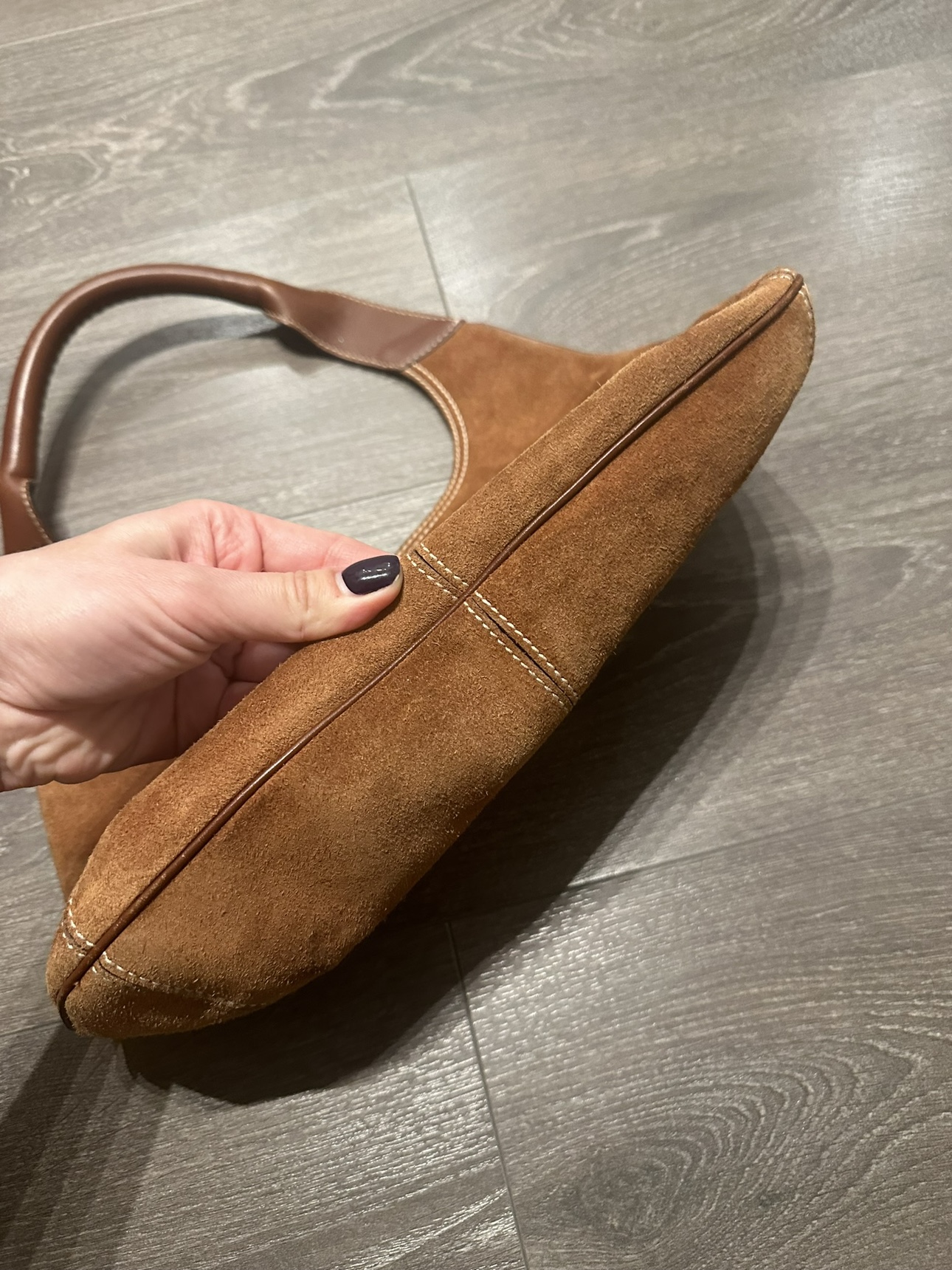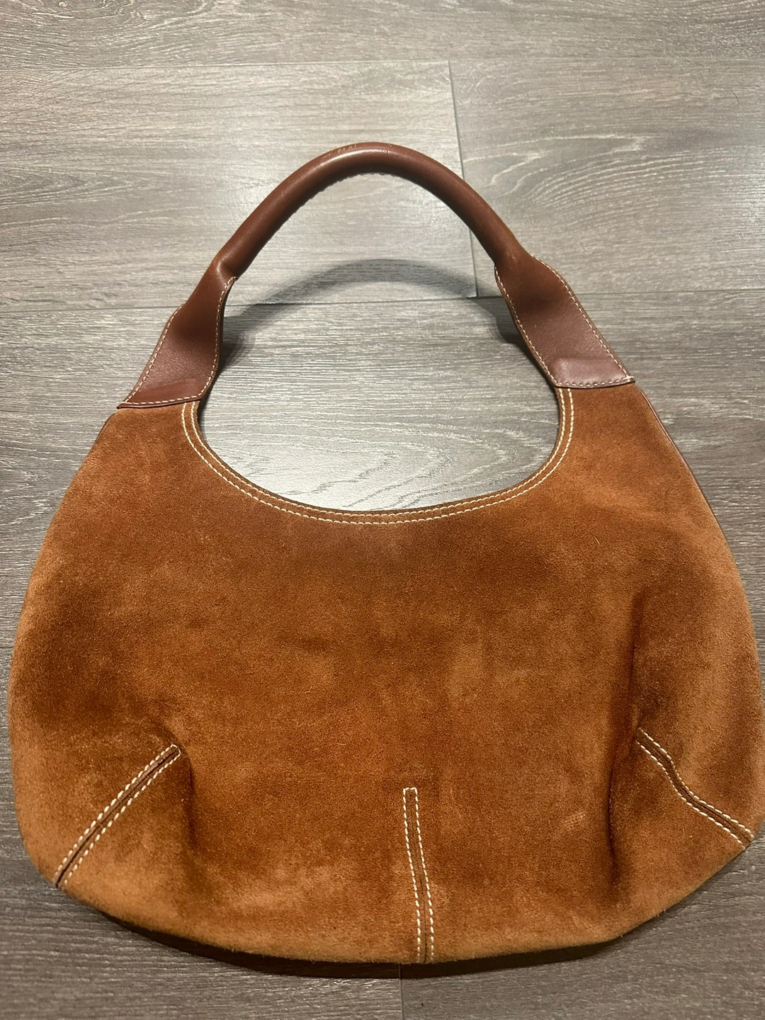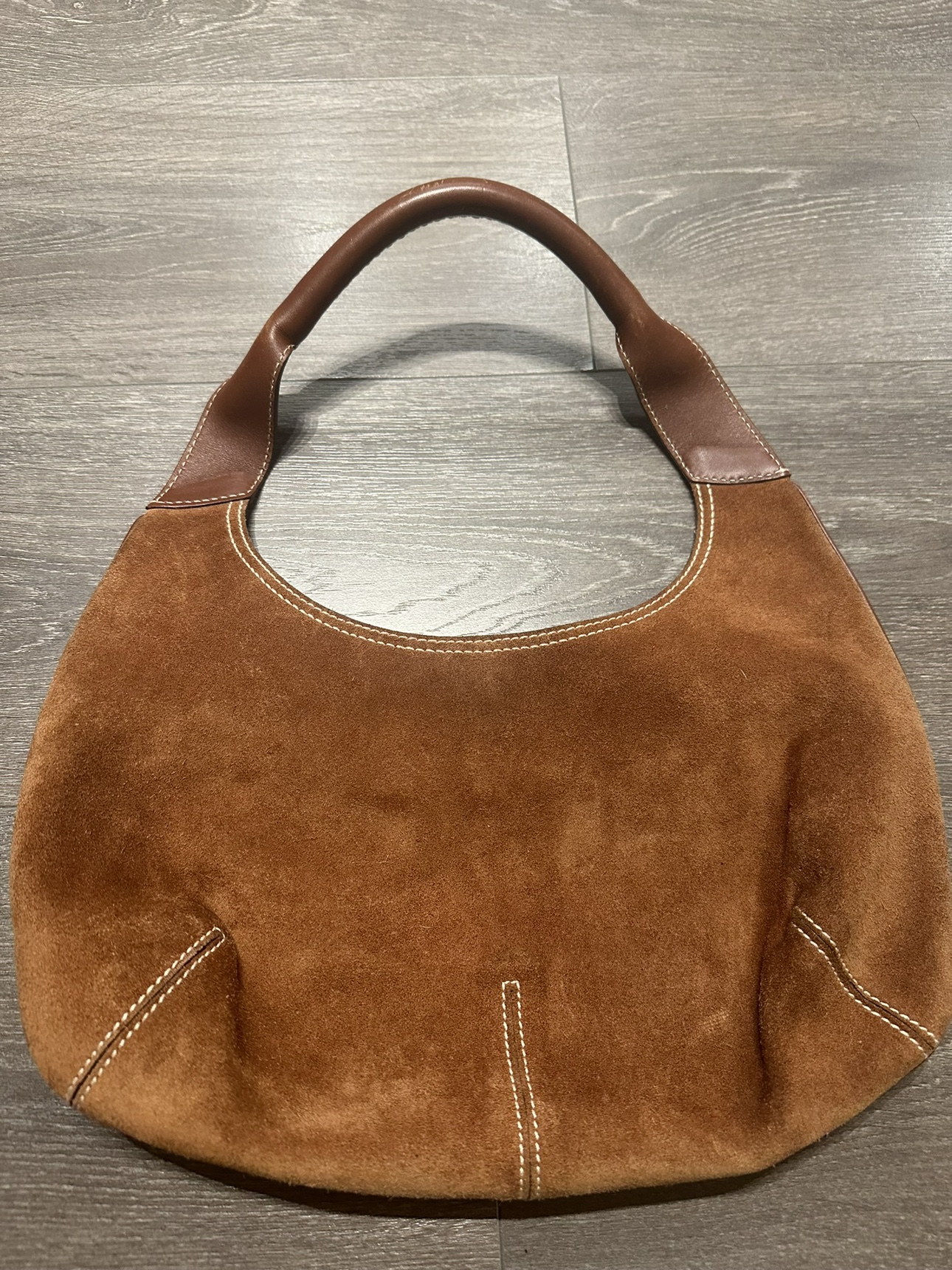 Salvatorre Ferragamo Hobo Brown Suede Leather Shoulder Bag - Made in Italy Good pre-owned condition Signs of wear shown in photos The inside lining is in great condition the bag measures approximately 7.5 inches (height) inches by 13.5 inches (length). The top of the handle to the top of the bag is 8 inches. Please check my other items. Lots of items available for sale :)