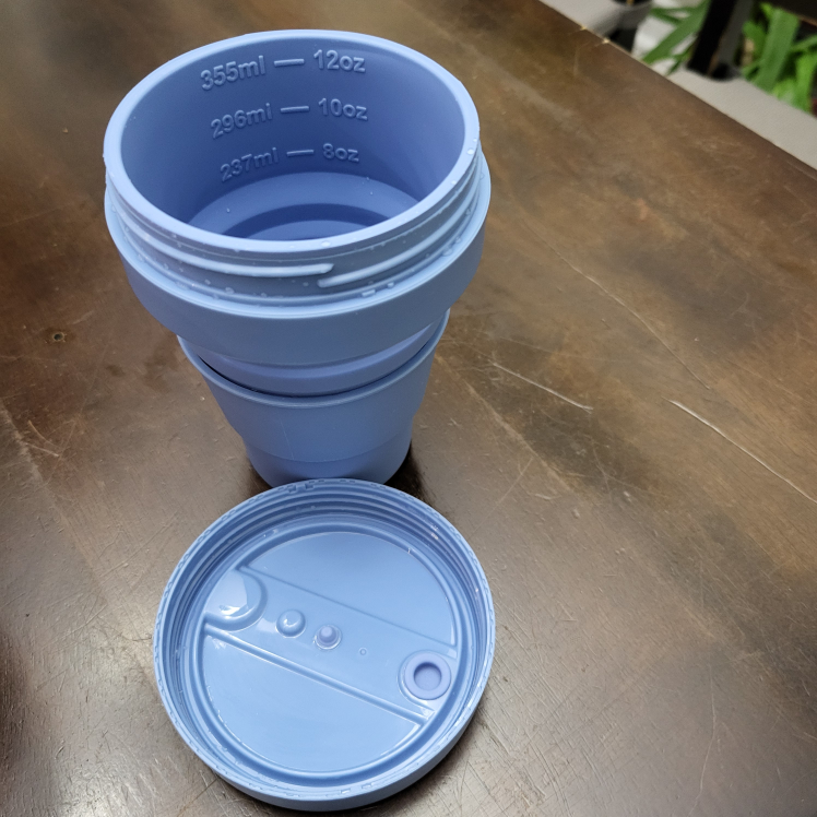 12 Oz flexible coffee mug. Great for camping, hiking, or traveling. keep things cold or hot.