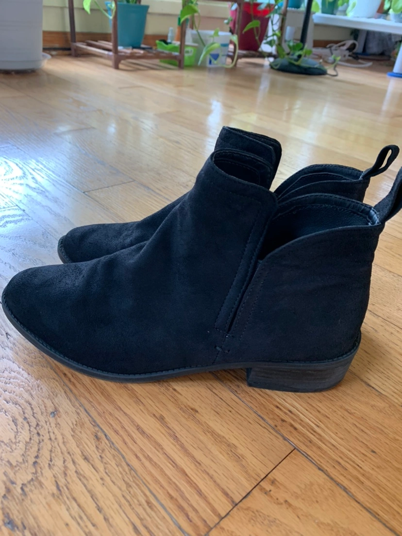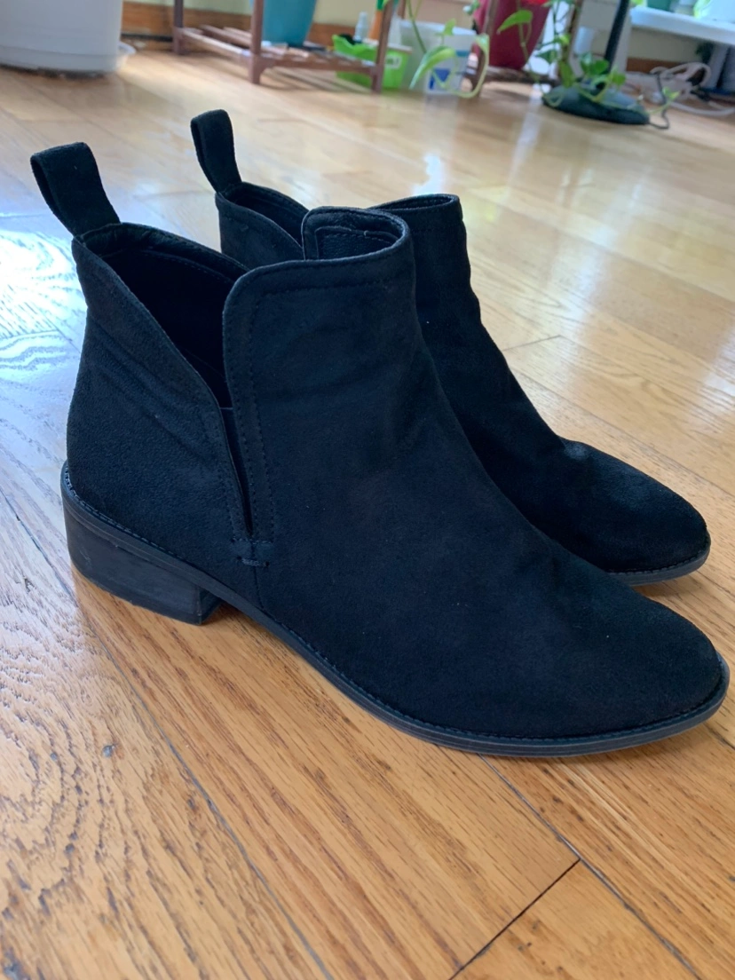 Cute boots that are made of suede material. They are super comfortable to wear. I bought it for ~$90 but no longer wear it. Recently washed it so it is clean.