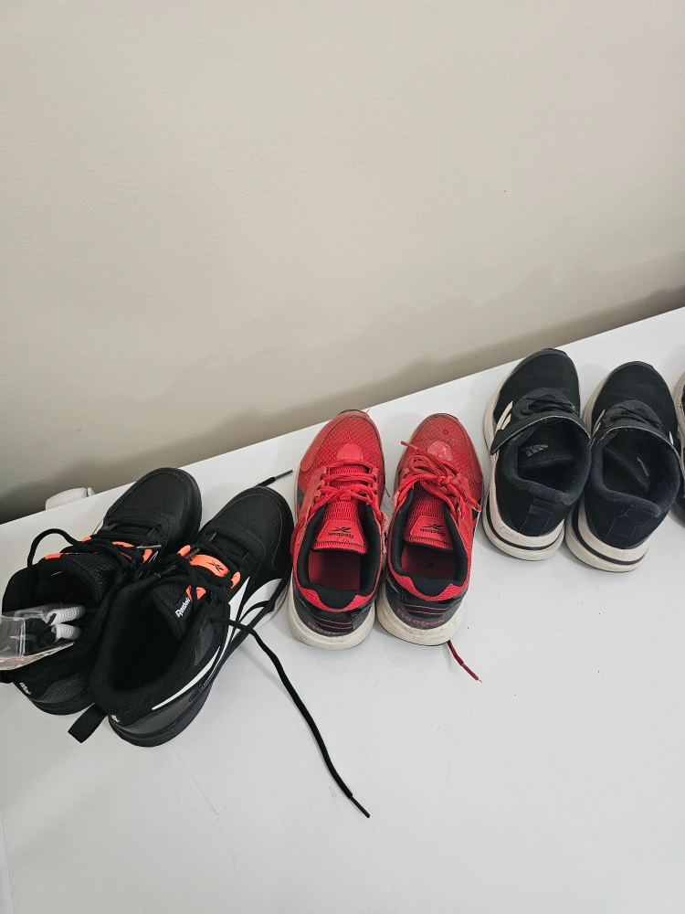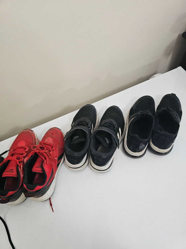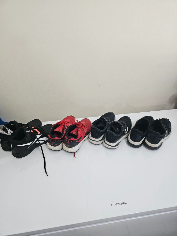 Four pairs of running shoes , my son has out grown his shoes..$30 for all 4
