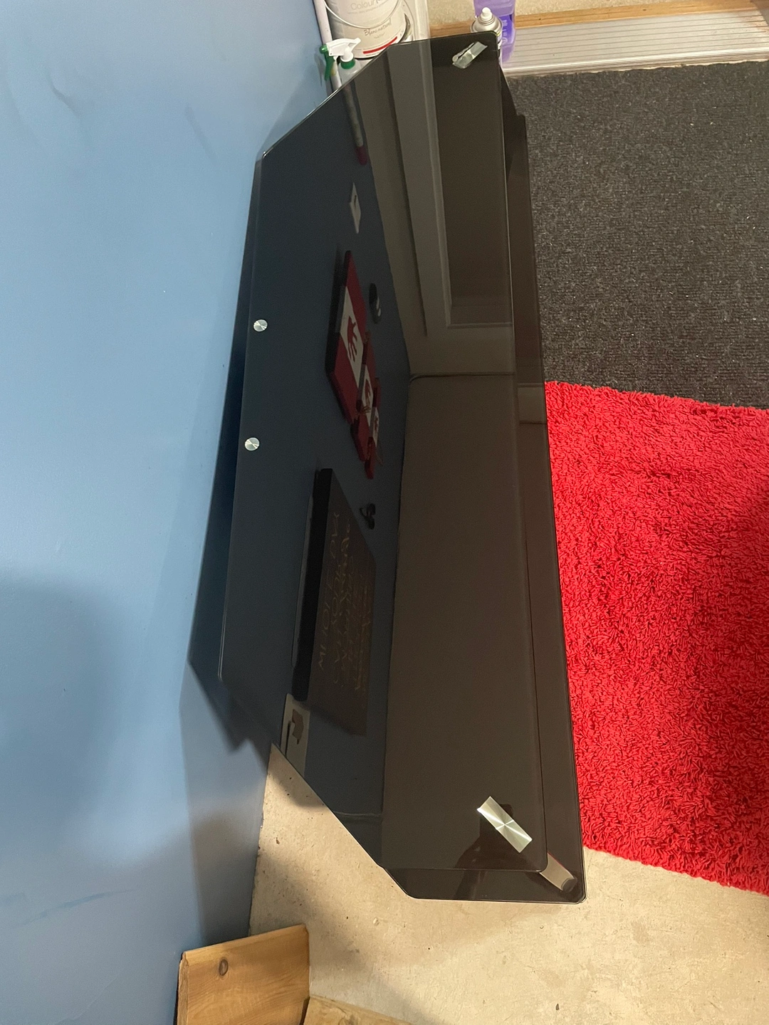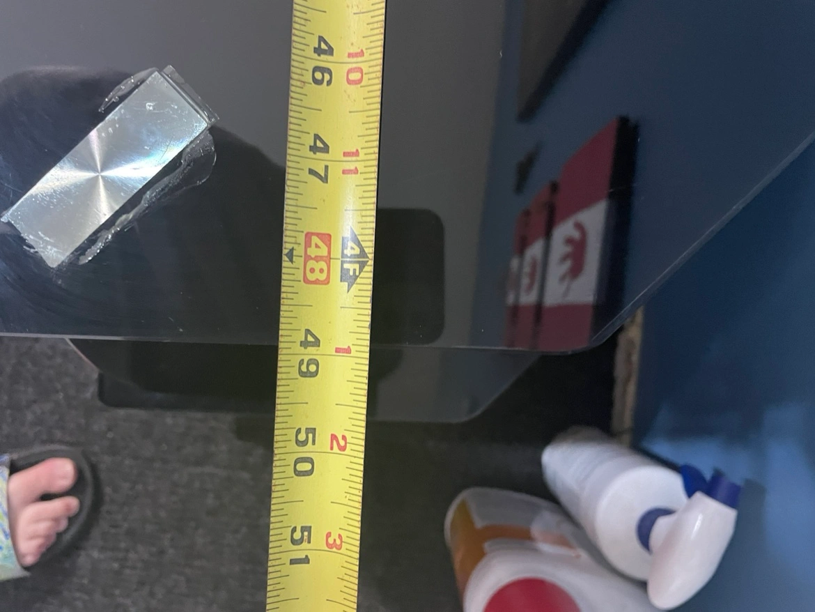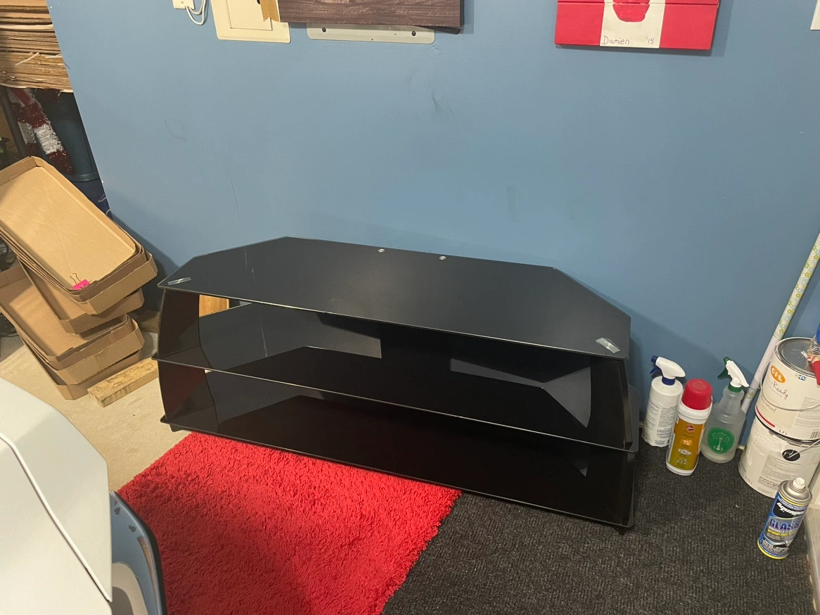 Very good condition. We just don’t have space. Measurements in photos. It is tempered glass. The top shelf is smaller and then middle is slightly bigger and as is the bottom shelf. Will need a mini van or truck and some help. ( it’s in our garage so no stairs ) Pick up only Will hear reasonable offers.