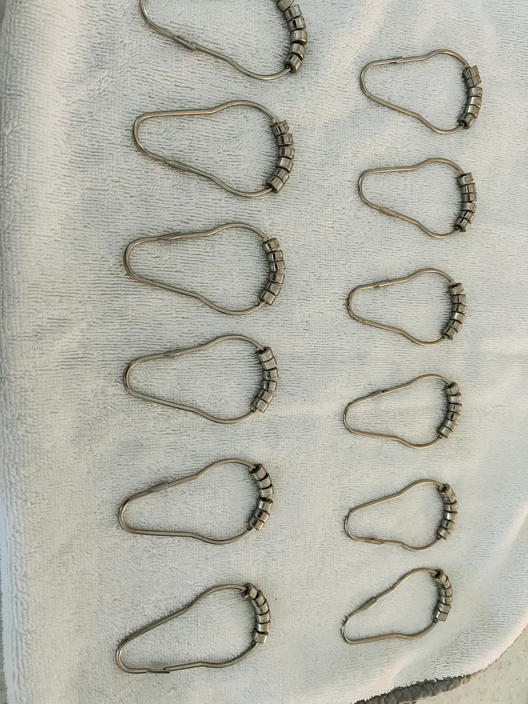 These Shower Curtain Hooks feature an innovative roller design that allows rings to easily glide along any shower rod. Constructed of sturdy, rust-resistant chrome-plated metal, these shower hooks are designed to last for several years. The smooth gliding design adds an elegant look and decorative touch to any bathroom. The steel hooks come in a pack of 12 to conveniently match the number of holes on standard shower curtains and liners. Pick up only.