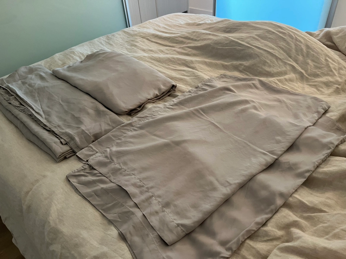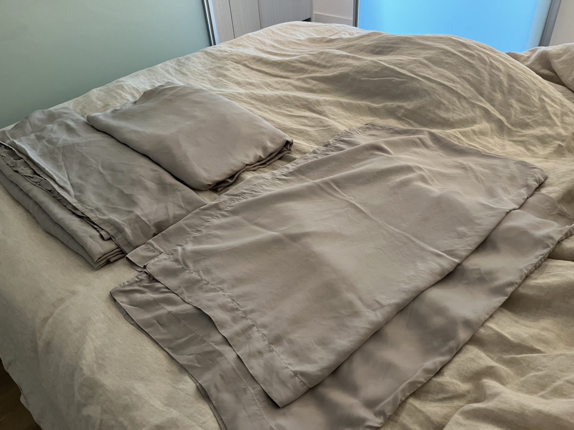 West Elm Queen size Pillow and Sheet Set 100% tencel lyocell Comes with sham, sheet and two pillow cases. Preloved with visible signs of use