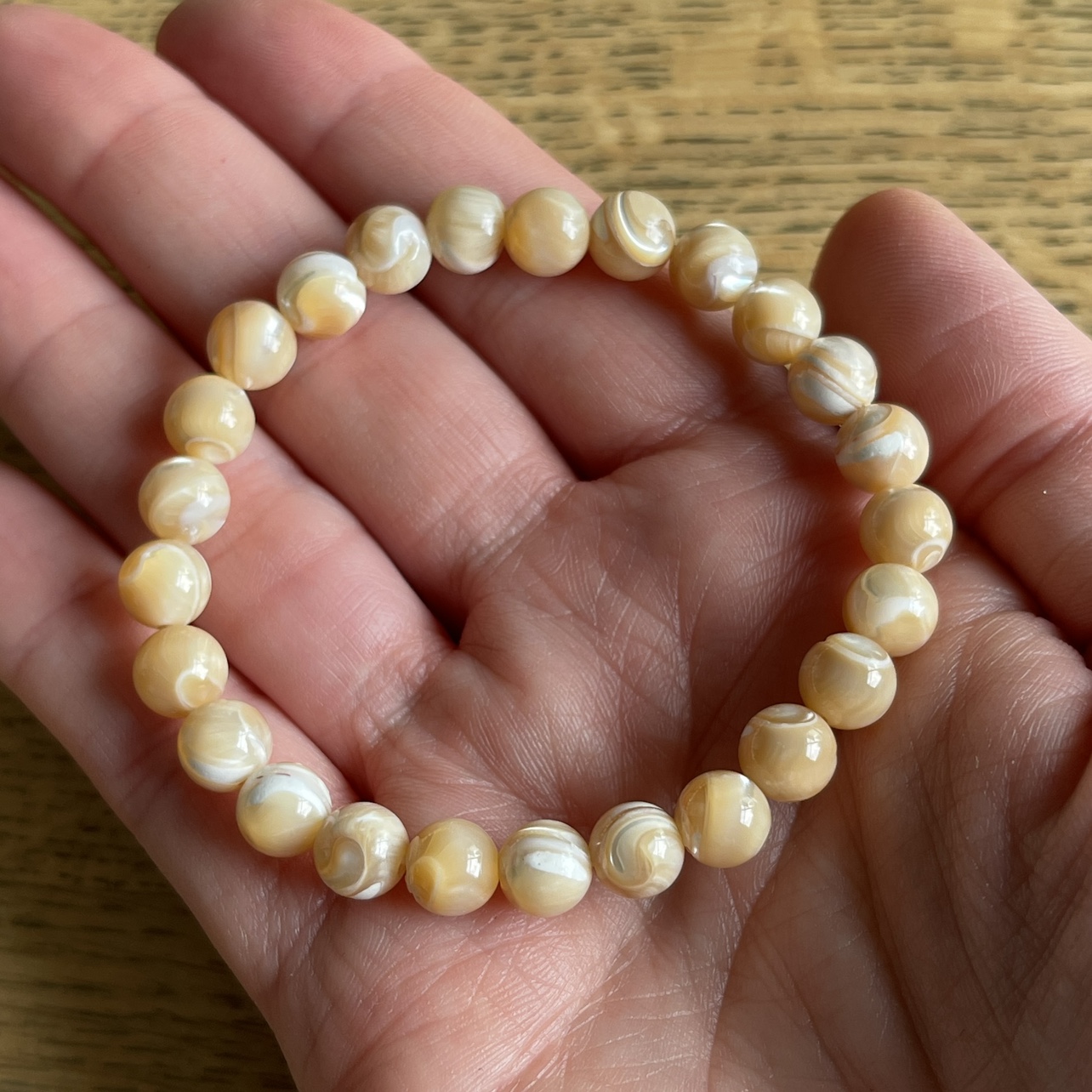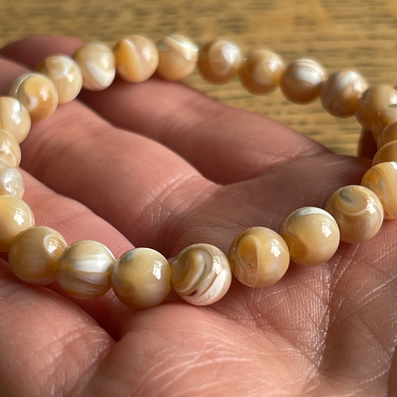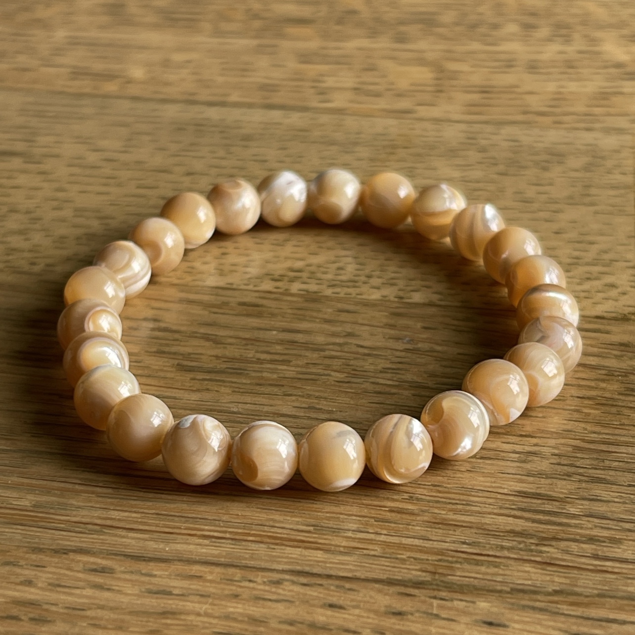 Bead size: 8mm Wrist size is aprox. 16cm (6.3 inches). Trochus shells originate from the ocean, allowing you to feel a deeper bond with the sea and its soothing, healing energies. Additionally, the shell's natural elements offer grounding and balance, bringing a sense of tranquility. Pick up in Woodlands SW. Please check my other ads and reach out with any questions like shipping options. Cheers!