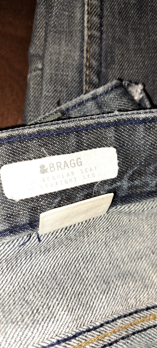 A pair of blue jeans. Bragg regular seat straight leg size is 12-13Y boys very clean tear at bottom looks like design cash only pick up only