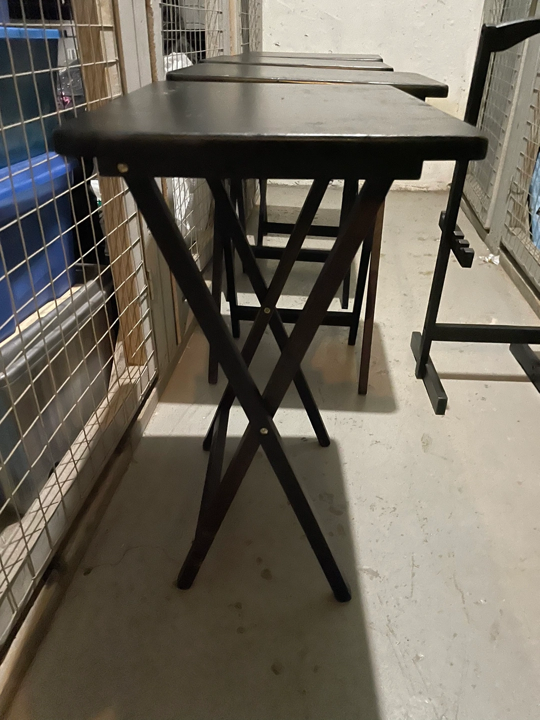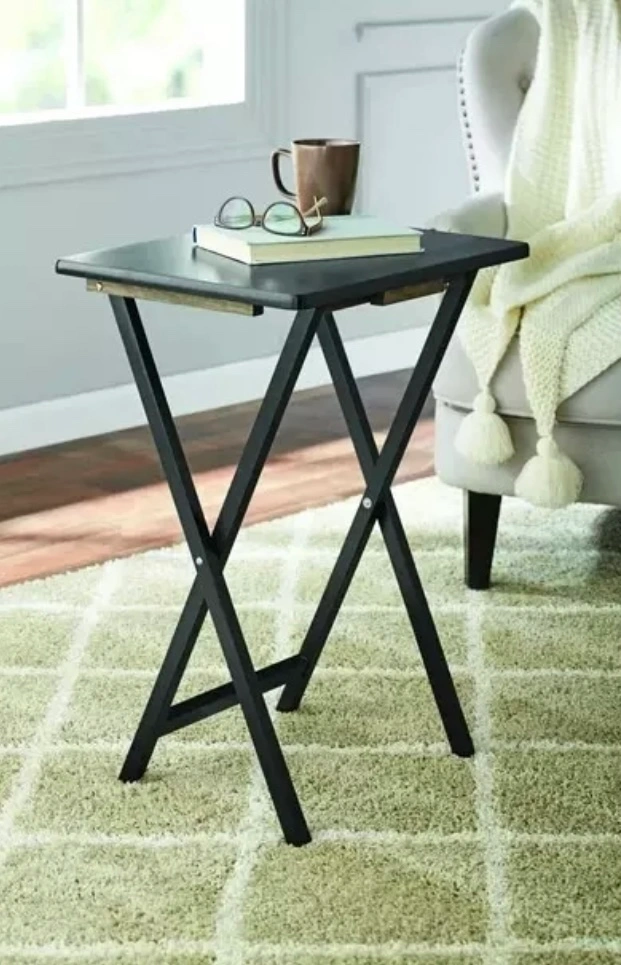 Folding TV Tray Table Set Game Snack Dinner Couch Laptop Stand 5Pcs 19 x 15 x 26 In good condition and sterdy, foldable and easy to carry with carry rack. See pictures You can pick up by Carlton and Jarvis area