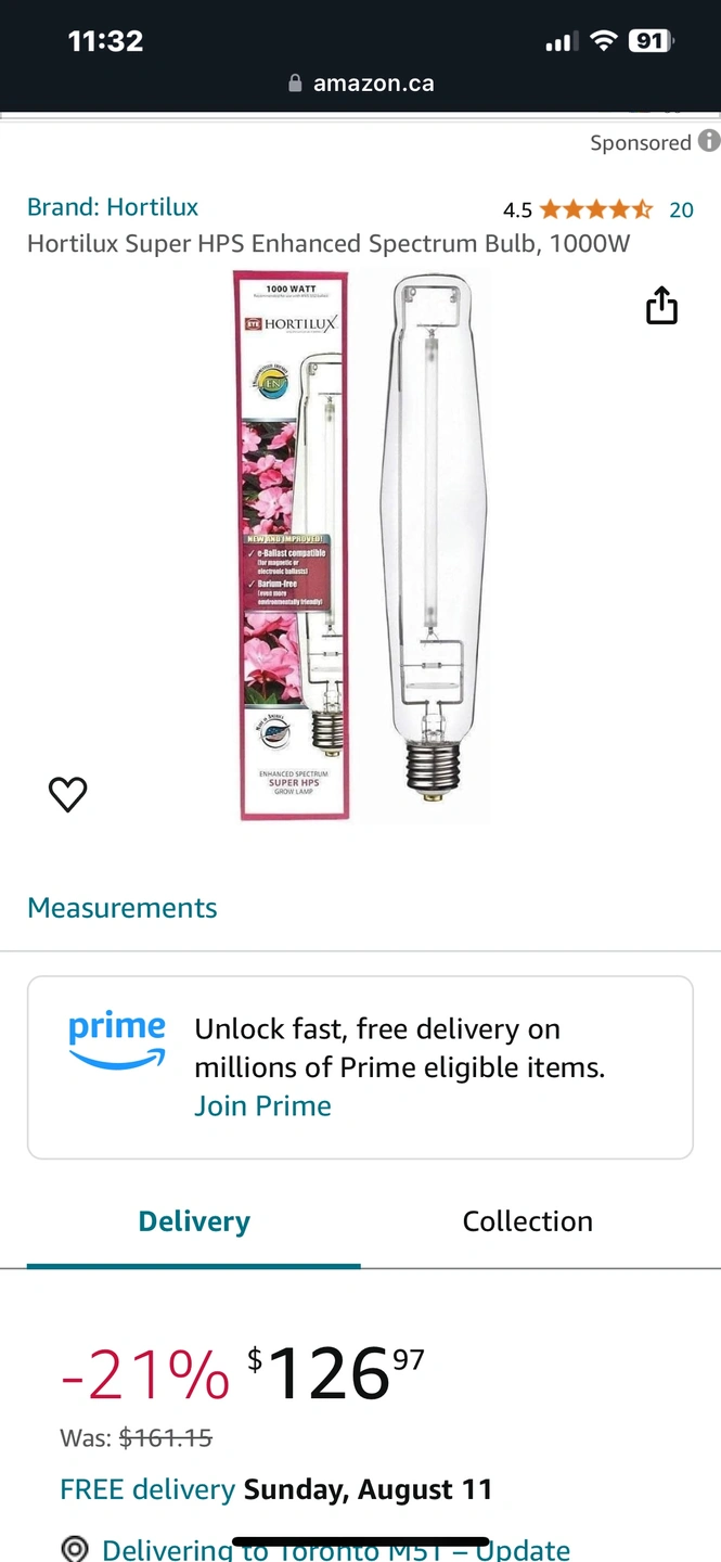 This is a 1000 Watt Hortilux Super HPS Grow Lamp. It is in its original packaging and is brand new. The box has some wear and tear but the bulb itself is untouched. It's an enhanced spectrum bulb and is e-ballast compatible. It's also barium-free and environmentally friendly. Pick up Dundas and Spadina intersection.