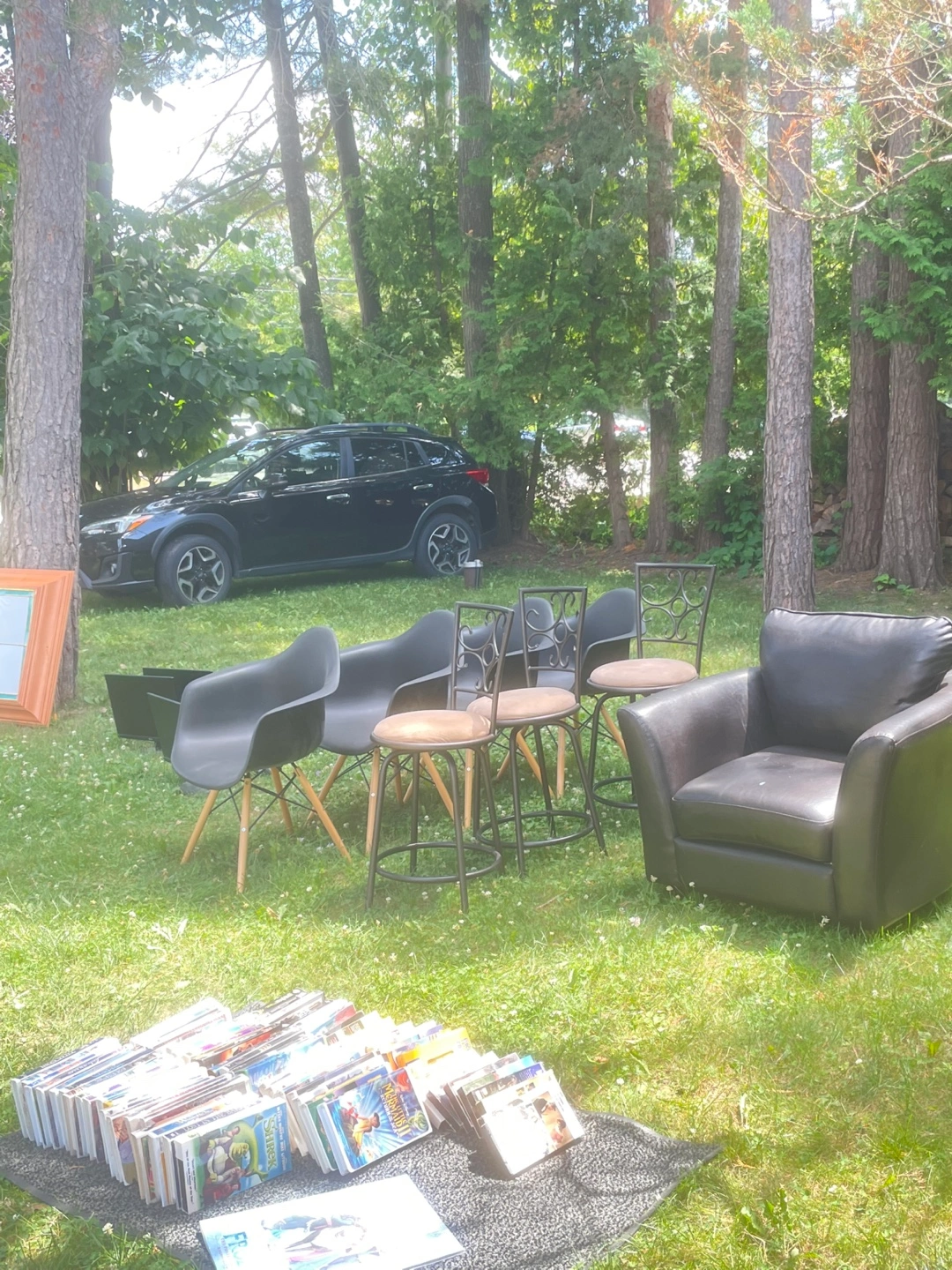 Four Bucket Style Crate & Barrel Chairs with wooden/wire criss cross legs. See our other chairs for sale as in 2nd pic. Pick up close to Alcona Tim Hortons.