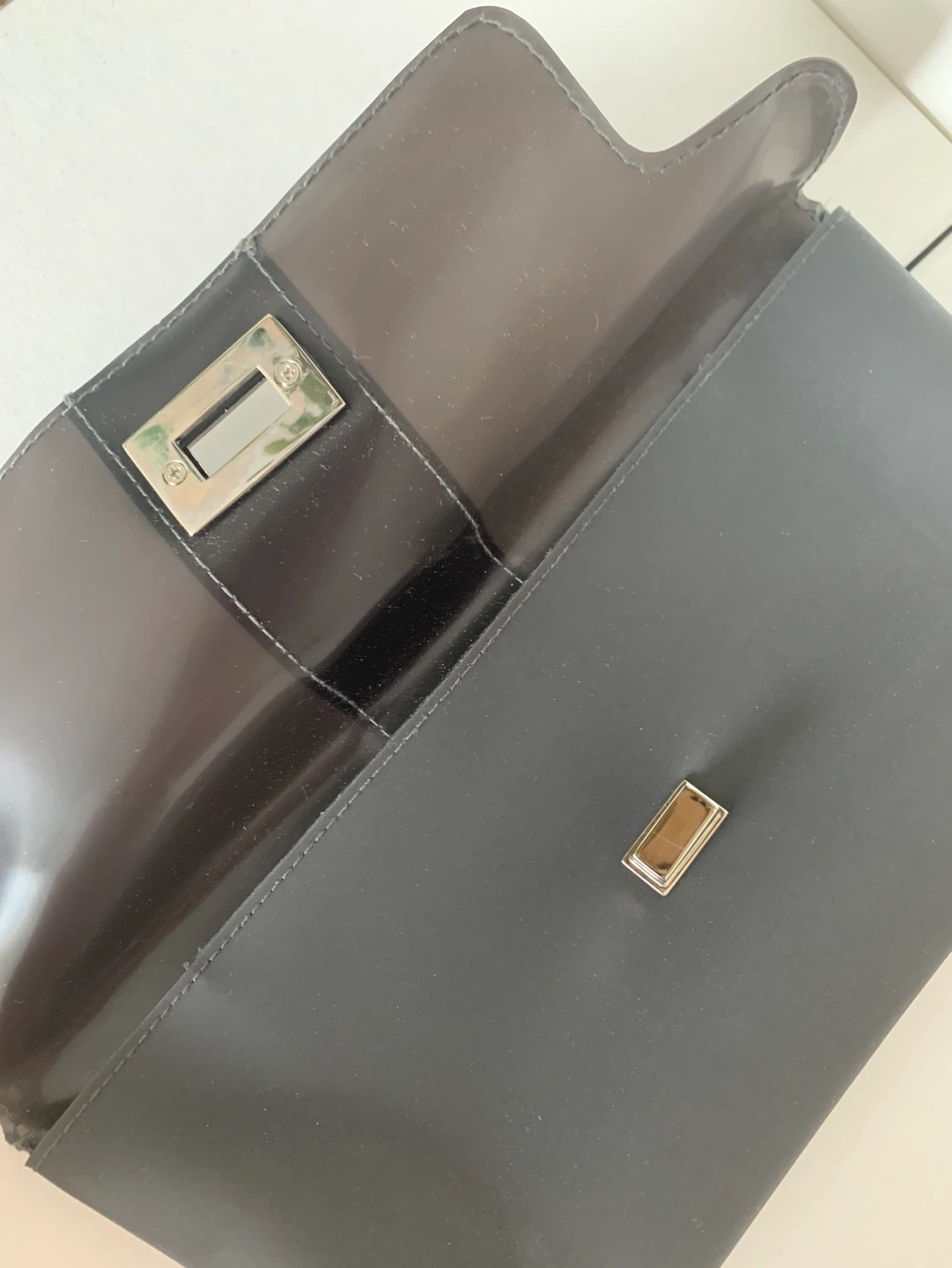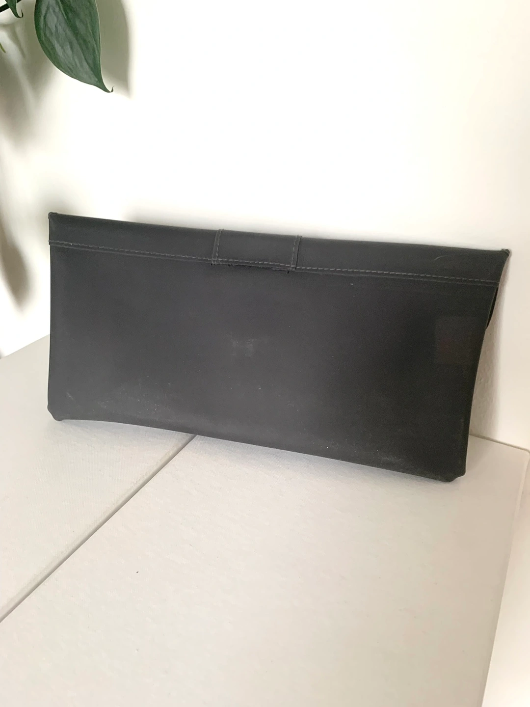 Made of a thick plastic PVC, this chic dark grey clutch is perfect for a dinner out. Inside has a pocket to keep things organized.