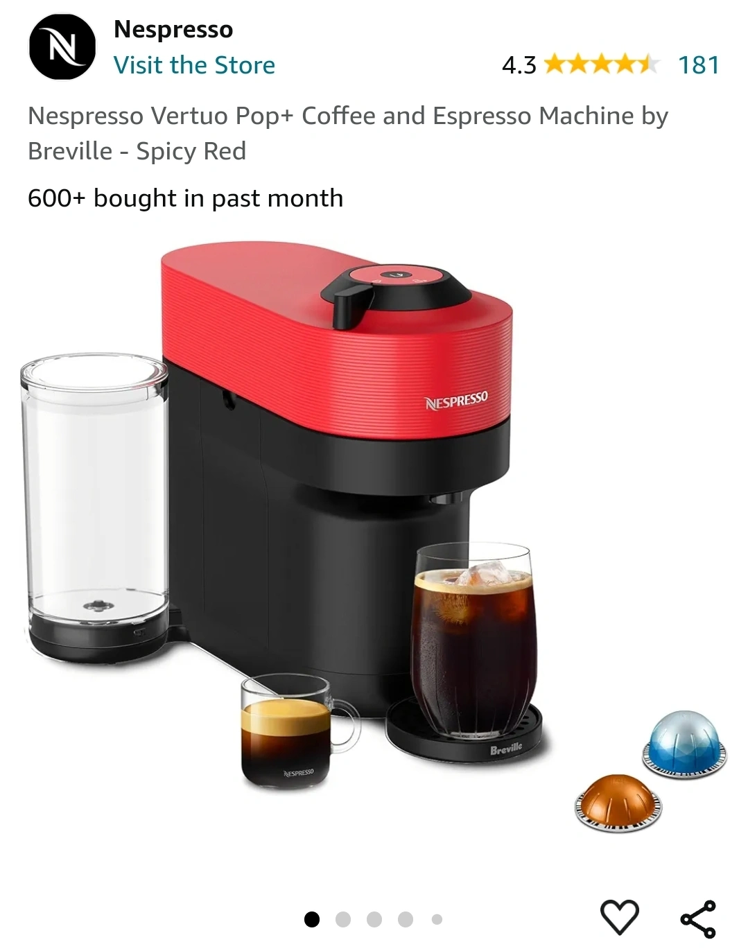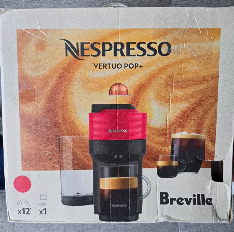 Brand new-Distressed package Special feature: Auto Shut-Off, Removable Tank, Auto Clean Function Stylishly compact machine High convenience & simplicity: one-touch brewing button. Versatile machine offering 6 coffee sizes (Ristretto, Espresso, Double Espresso, Gran Lungo, Mug/Coffee, Alto & Cold Brew style coffee). Exceptional quality coffee with countless premium and flavoured coffees. Bluetooth smart technology and Wi-Fi ensure you to always get the best and up-to-date Nespresso coffee experience thanks to the automatic software update on your Vertuo Pop+ machine. Sustainability: Nespresso capsules are recyclable. All aluminium capsules collected by Nespresso are recycled.