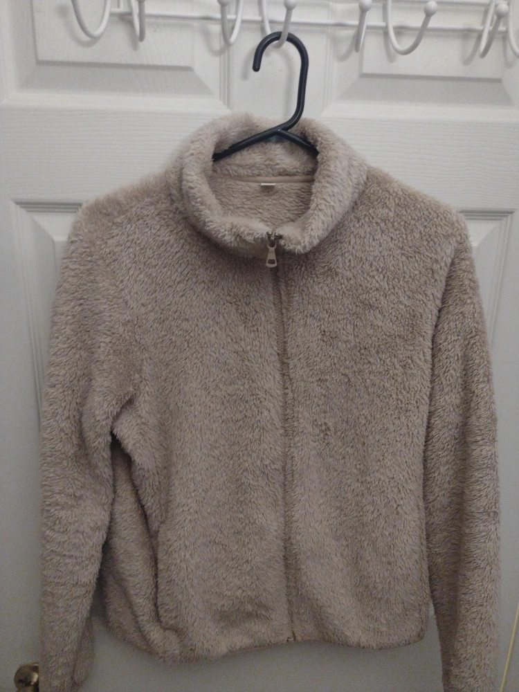 Beige fleece jacket with a zipper closure. #decluttering willing to bundle with other clothes