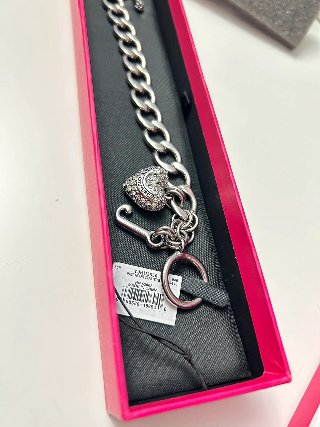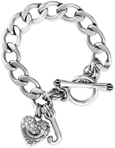 Silver bracelet featuring a large heart charm with clear crystals and a toggle closure. The bracelet is approximately 7.5 inches in length and 1 inch wide. Pickup richmond blundell no 3 road