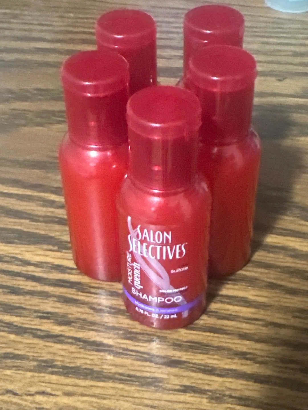 •Five travel-sized bottles of Salon Selectives Moisture Quench Shampoo. • size 22ml each • Some might not have label on them. •Each for $1