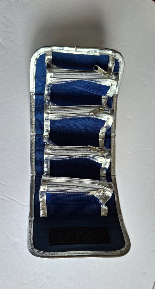 4 Compartment Travel Organizer QUALITY & STYLE: Made with Durable, Nylon Fabric with a Rolled Up Rectangular Shaped gives a Clean, Elegant Look. MULTI-USE: Very practical for small-size items that can not be easily found while traveling like small Makeup items Rings Earnings and small necklaces (one compartment can be used for each item) 4 zippered compartments. Compact Stylish, Convenient and Practical, Ideal for small jewelle items Rolls for compact storage