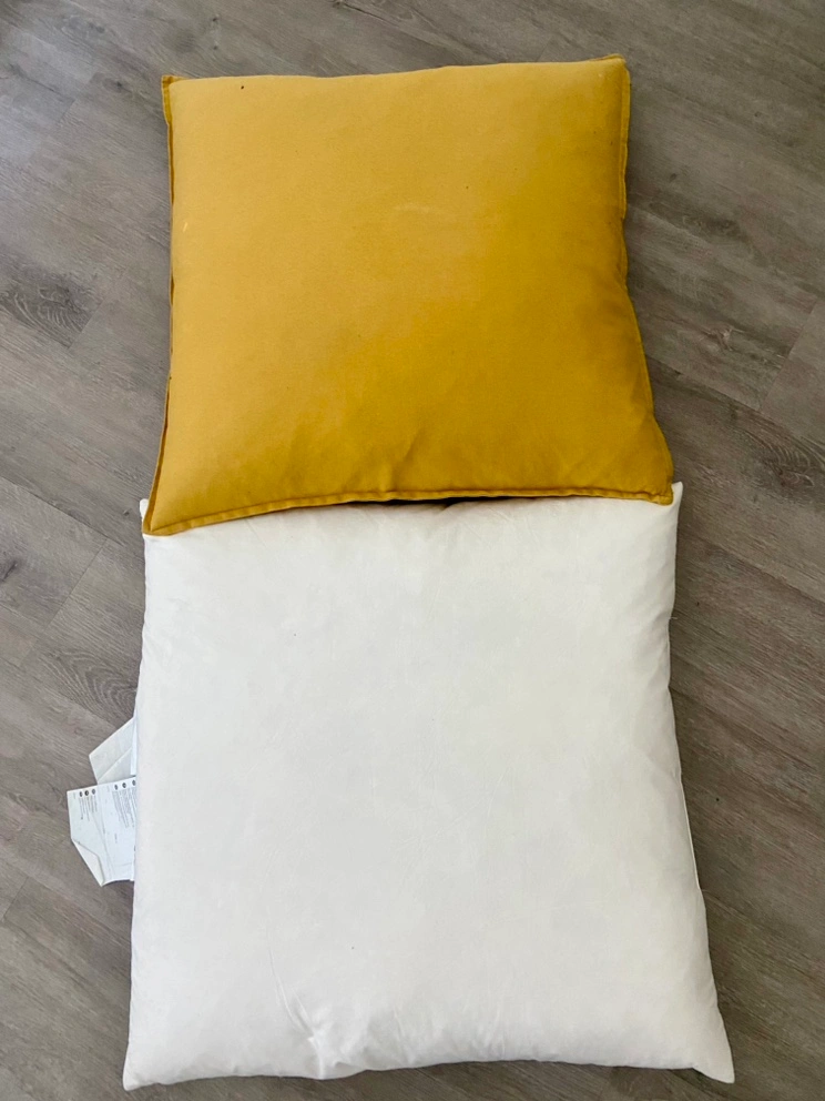 Colour: Mustard Yellow & White The pillowcase can be removed. Perfect for a couch, bed, or floor. From a pet/smoke free home. 2 for 8$