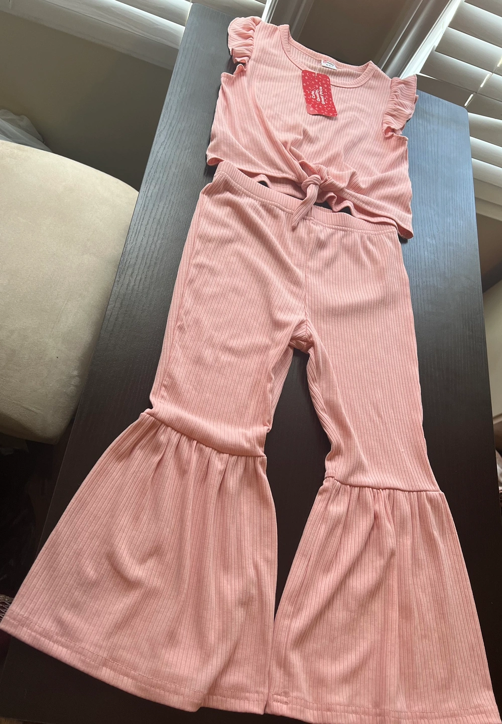 *firm price* Selling brand new light pink flare bottom pants set for girls in size 4-5Y-from PatPat brand with tag still on it. It has never been worn with the tag still on it. Unfortunately, my child didn’t get the chance to wear it.