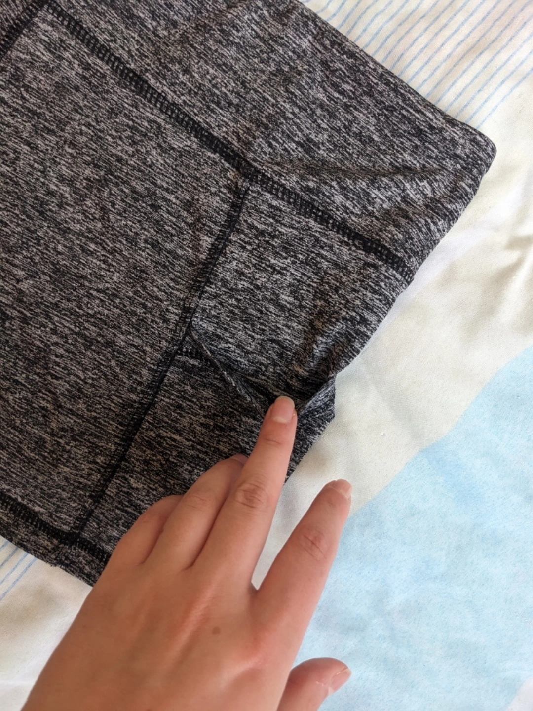 Other Details: - Stretchy material - 44% Nylon, 44% Polyester ,12% Spandex - 2 side pockets, 1 internal small pocket - Used but in good condition