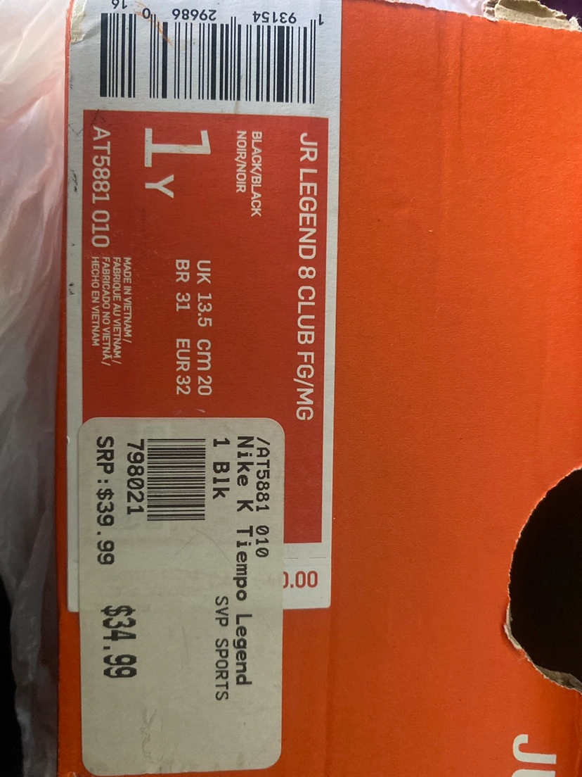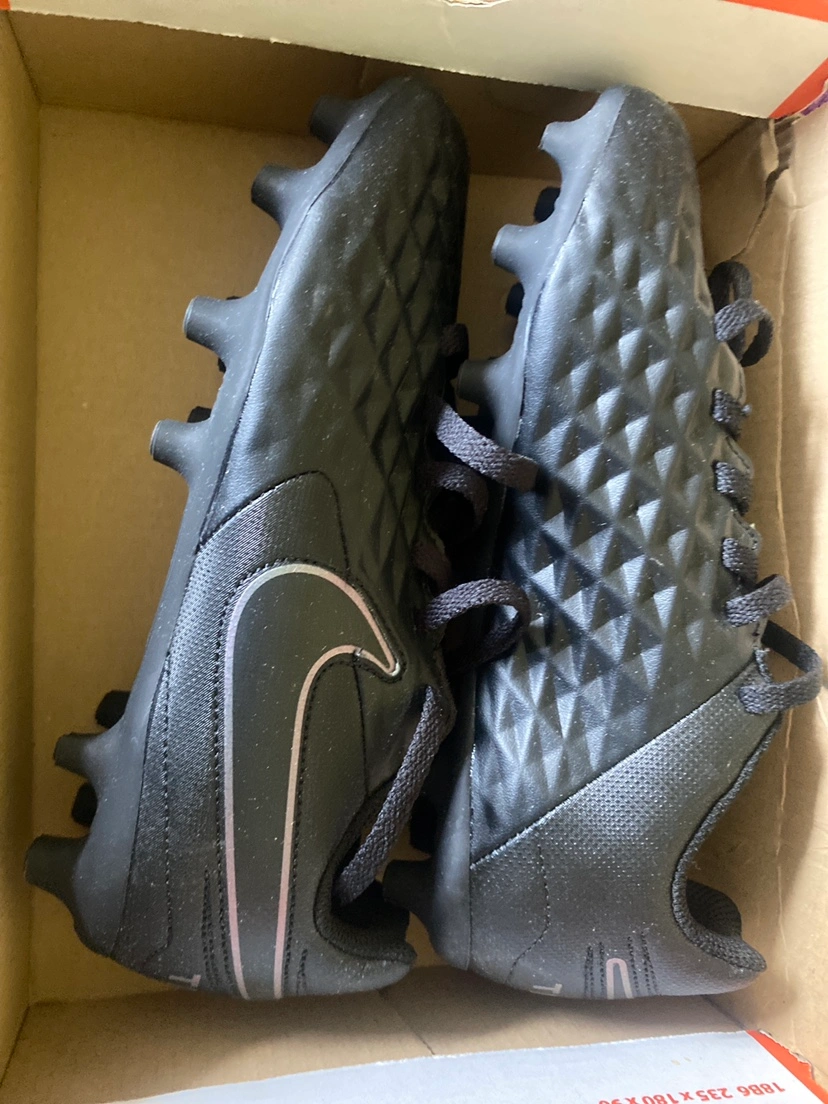 Black and silver soccer cleats for kids, size 1Y. Comes with the original box. Never used