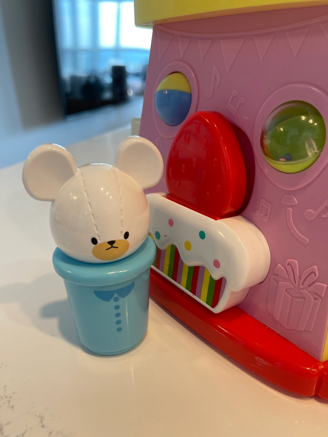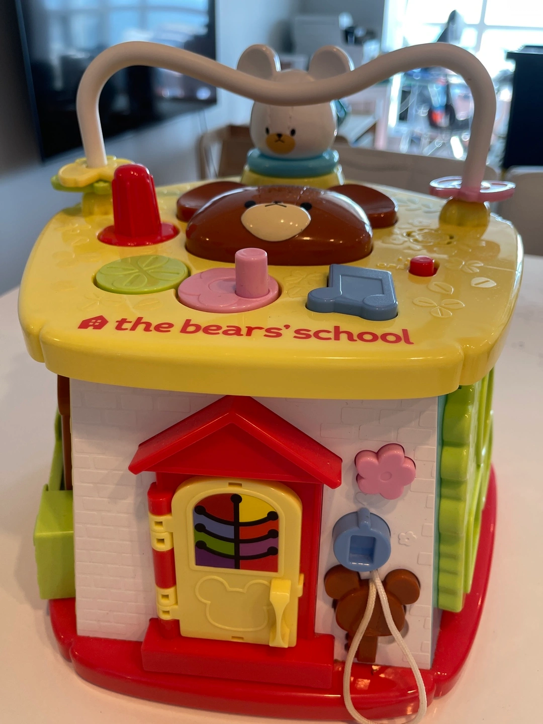 This activity cube is designed for babies and toddlers. It includes a variety of activities, including shape sorting, spinning, and sliding. This toy is in excellent condition and ready for a new home.