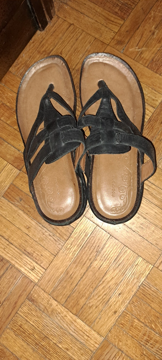 Black leather sandals. These sandals have a brown footbed and very sturdy. size 7 pick up only cash only