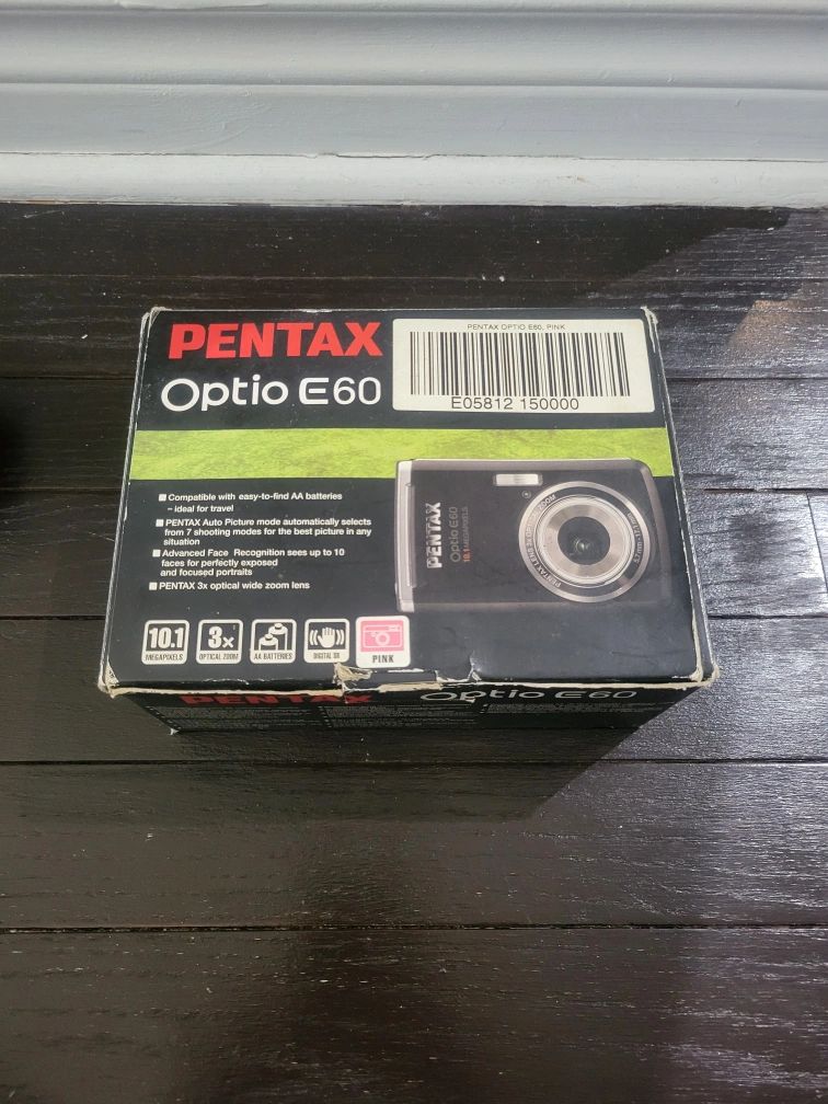 brand new Pentax Optio E60 Digital Camera - Pink. box is not in good condition. pick up at esso at 12338 Yonge St, Richmond Hill, ON L4E 0W5.
