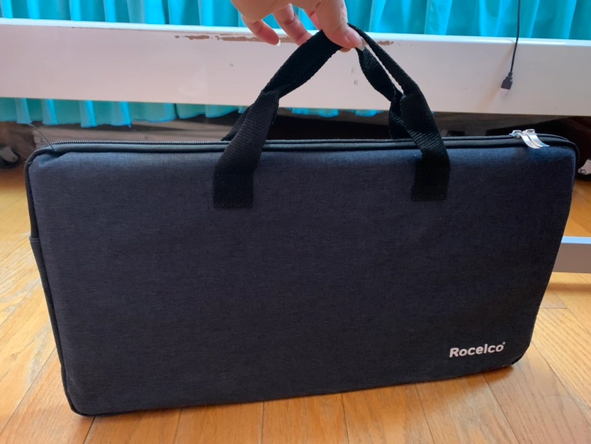 Black adjustable laptop stand for comfortable and ergonomic use! I bought it for about $100+ tax through grand and toy, but didn’t use it as much. It comes with a carry bag.