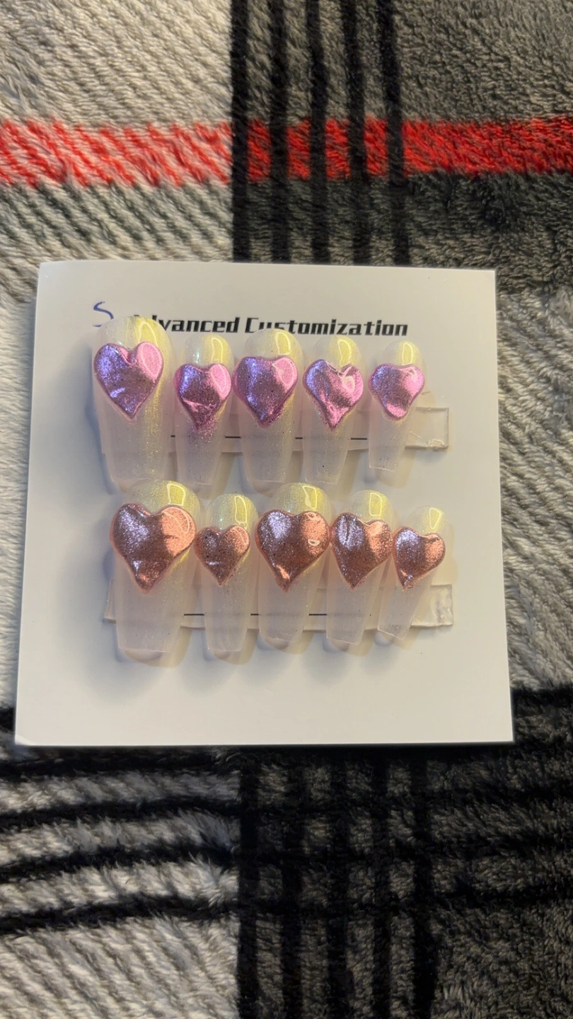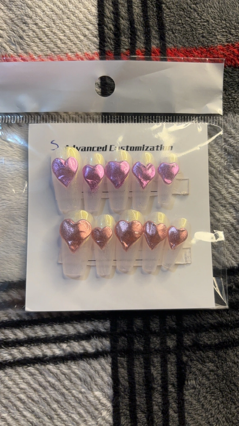 These press-on nails feature pink and gold hearts on a clear base. Brand new with Accessories Press on Stickers and Filer