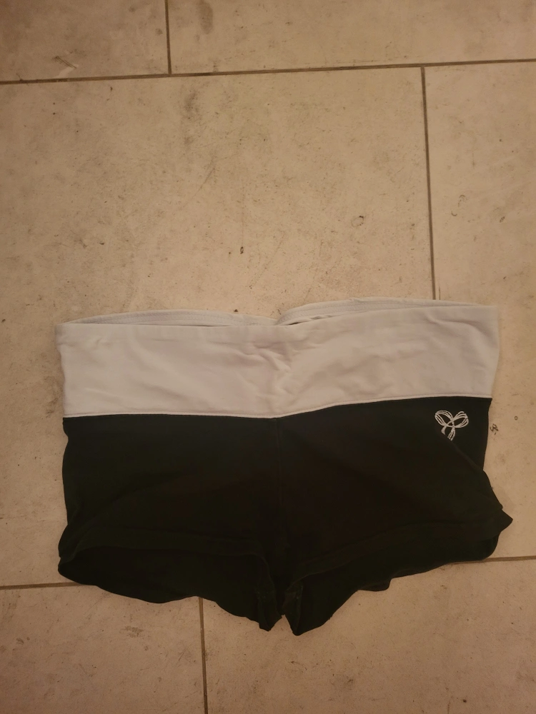 Black and white running shorts. They are a size small. They are made from a stretchy material and are perfect for working out or running.