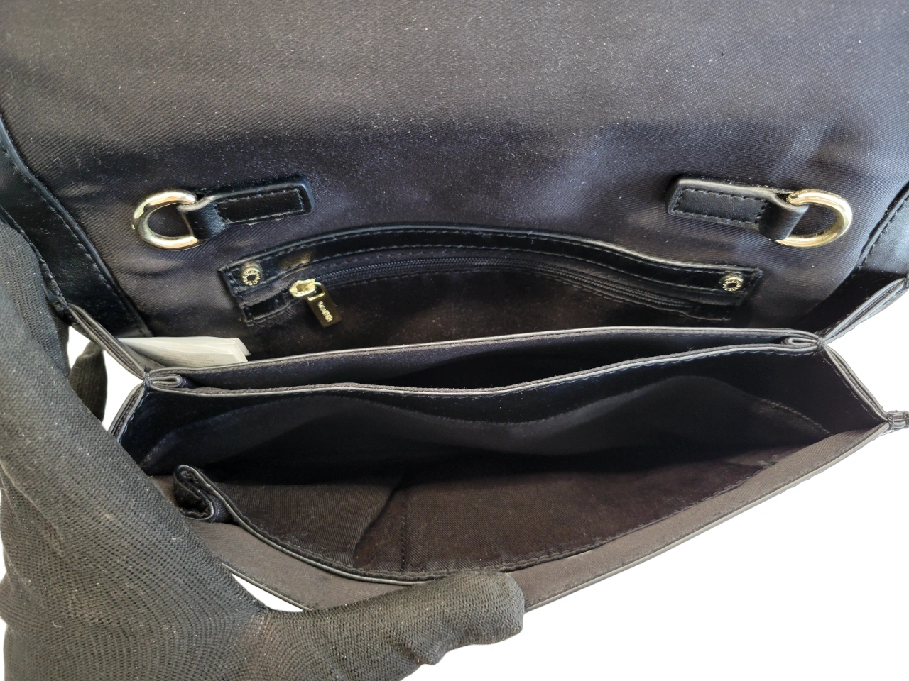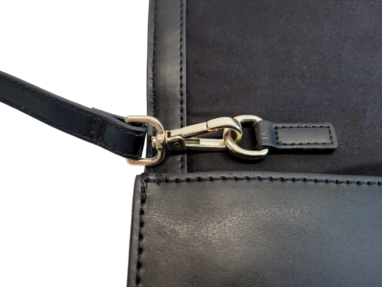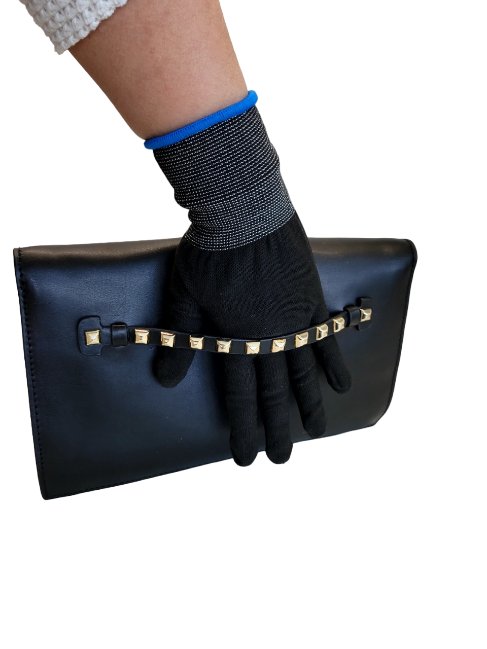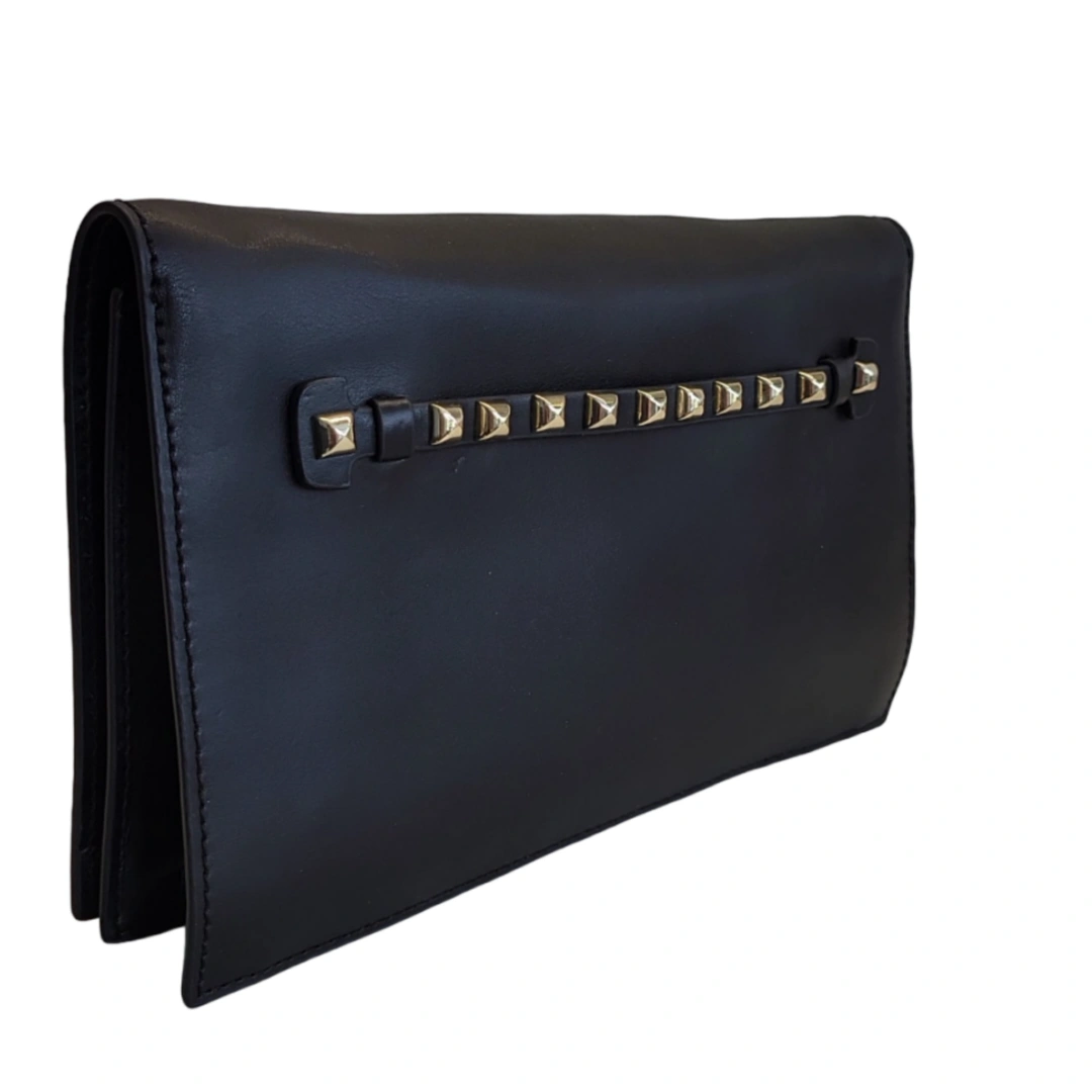 ○ Black leather clutch / handbag, accented with shiny gold square studs on one side, a front flap with magnetic closure, and a removable black leather shoulder strap ○ Leather exterior. Polyester lining. ○ Excellent used condition (worn only once), no damages/marks/stains to exterior or interior of bag. ○ Timeless, elegant, and versatile handbag (2 in 1 design and can be formal or casual!) ○ Multiple pockets for keeping contents organized (3 main inner sections, 3 interior pockets, 1 zippered pocket) ○ Measurements: W. 11", H. 7", can expand to 3" deep, drop shoulder length is 20" ○ All reasonable offers considered (accepted or countered) ⁃ ⁃ ⁃ ⁃ ○ Tags: Leather, Clutch, Handbag, Shoulder bag, Purse, Danier, Black, Gold Studs, Contemporary, Formal