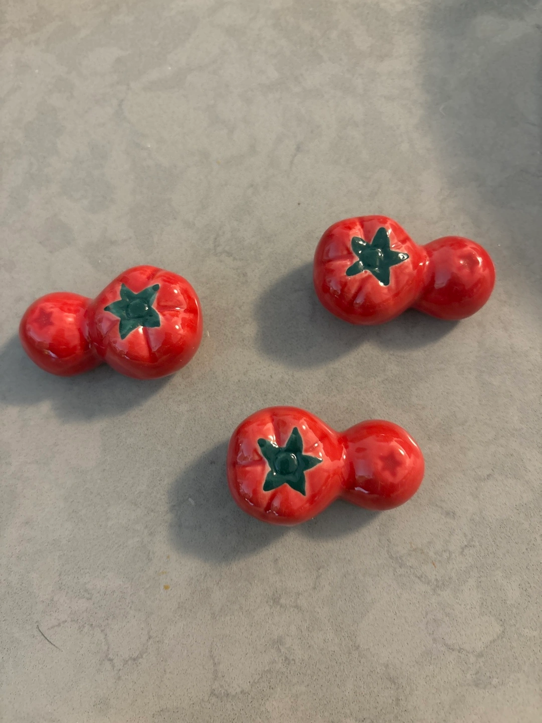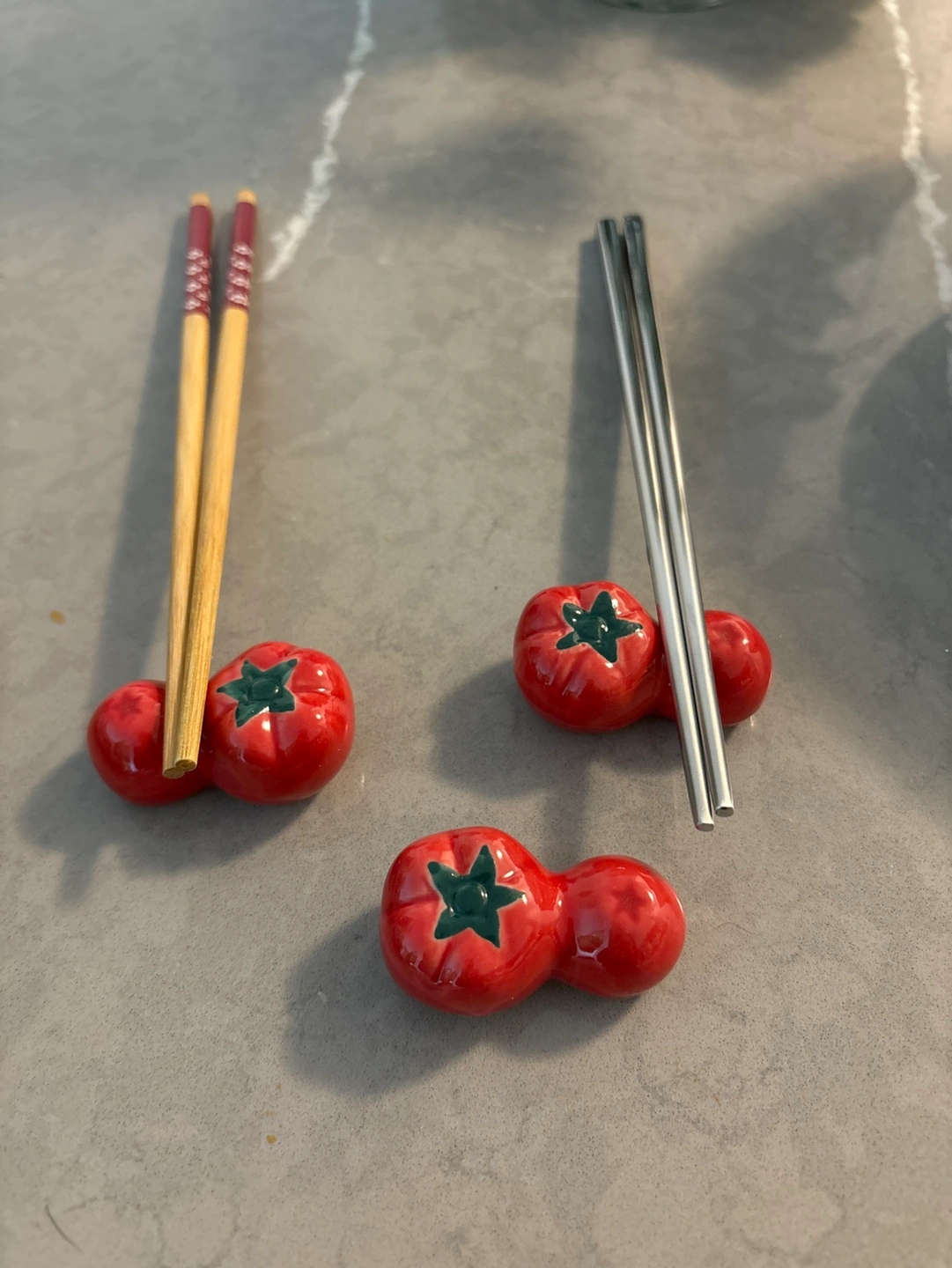 Set of three ceramic tomato chopstick rests. Very cute and brand new!
