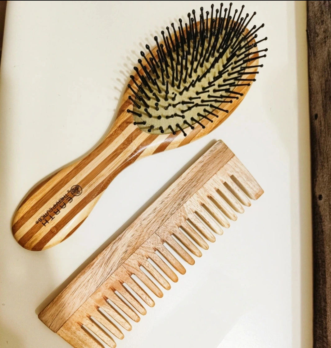 Set of three wooden hair care tools including a paddle brush and combh excellent condition. pick up only. check out my other listings for discounts!
