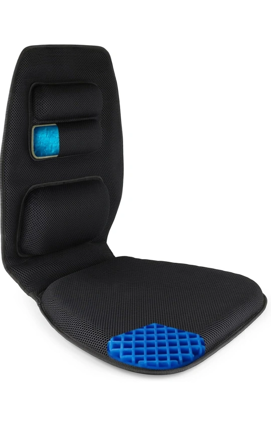 FOMI Premium Gel Cushion and Firm Back Support | Seat Cushion Pad and Upper Lower Thoracic and Lumbar Pillow for Car, Office Chair | Pressure Sore, Coccyx Pain Relief | Posture Aid (Grid Gel) °•○•°•○•°•○•°°•○•°•○•°•○•°•○ Retails $89+ ☆`New | open box 》$60 ✨️ 📍 Pick Up Point @ Scarborough Golf Club Road & Lawrence Ave East 📦 May Deliver Locally or Ship via Canada Post for an additional cost* 🔎 BE SURE TO CHECK OUT MY OTHER LISTINGS FOR MORE AWESOME DEALS! Thank you. °•○•°•○•°•○•°°•○•°•○•°•○•°•○ COMBINED COCCYX AND FULL BACK SUPPORT- The ultimate cushion with unparalleled comfort and full support of both back and buttocks. ULTIMATE COMFORT AND TAILBONE PRESSURE RELIEF- The seat cushion (15" x 17") is made from medical grade gel material, maintaining support for all day sitting or driving. The advanced column-buckling technology disperses your body weight evenly, eliminating pressure on the uncomfortable pressure points and increasing air circulation to keep your bottom cool. FULL BACK SUPPORT; IMPROVES POSTURE- The firm back cushion (19" x 16") is made of high-density foam topped with a layer of gel making it comfortable for all day use. Upper, middle, and back memory foam sections provide support for your full back. They conform to natural body curvatures, supporting the natural curve of your spine, resulting in a healthy back with prime posture. RELIEVES PAIN- Its firm back support helps keep your spine in a neutral position and properly aligns your neck, shoulders and lumbar vertebrae, liberating you from upper and lower back pain. Helps prevent and treat coccyx issues, lumbar strain, sciatica, degenerative disc disorders, and others. NOT FOR A COUCH, FITS MOST CHAIRS, STAYS IN PLACE- Water and spill proof premium 3D polyester cover for easy cleaning. Non-slip friction bead grip on bottom and back surface along with adjustable, 3-way straps ensures it fits any chair and stays in place. Perfect for your home, car, office, plane etc. COMPATIBLE CHAIRS, NOT FOR A COUCH- The seat back cushion fits perfectly with high back office chairs, high back dining room chairs, and front car seats. For medium and low back chairs (ie wheelchairs, kitchen chairs, etc) see our other Premium Gel Cushion and Firm Back Support. This product will not work well for couches or other chairs with a very bulky back thickness as the product cannot fast to the back of a couch.