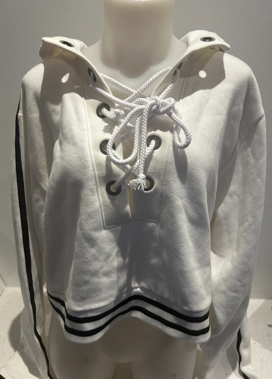 New with tags. White Fenty by Rhianna hoodie with black stripes. Has a lace-up detail at the front. Rising sun logo on back. Size medium. Please scroll through my listings for a great selection of designer fashion, trendy fashion, high end skincare and makeup and beautiful kitchen and homewares. Always adding new great items so please follow and take a look! Bundles: if you buy more than 2 items, I may be able to discount your bundle further, depending on the items. Please ask.